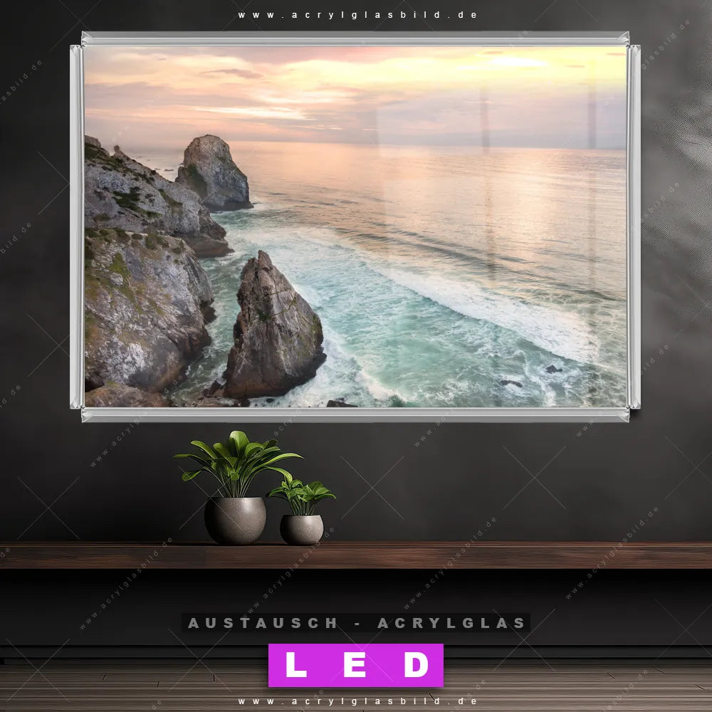 Begriffe wie Meer, Küste, Sonnenuntergang, Stein, Natur, Felsen, Sommer, Herbst haben dich auf der Suche nach deinem neuen Austausch-Acrylglasbild inspiriert? Dann sollte das Wechsel-Acrylglasbild Felsküste für dein bereits vorhandenes LED Acrylglasbild Canvalight® DIA den Weg zu dir finden.