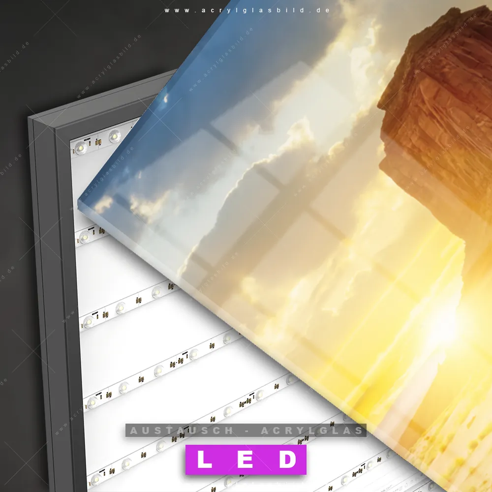 ▶️ ACHTUNG: Du solltest bereits ein LED Acrylglasbild Canvalight® DIA besitzen! ▶️ Acrylglas-Scheibe zum Austauschen ▶️ von hinten bedruckt | 3mm stark ▶️ Acrylglas-Scheibe in Höhe & Breite je 15mm kleiner als angegebenes Maß ▶️ für DIA-Klapprahmen-System zum einfachen Wechseln der Motive ▶️ faszinierender Tiefeneffekt ▶️ nur Acrylglas-Druck ohne Leuchtrahmen