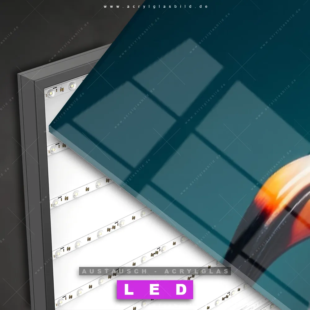 Begriffe wie Vogel, Flamingo, Dschungel, Wasser, Farbe, Rauch, Qualm, Nebel, Dampf haben dich auf der Suche nach deinem neuen Austausch-Acrylglasbild inspiriert? Dann sollte das Wechsel-Acrylglasbild Porträt eines Flamingos für dein bereits vorhandenes LED Acrylglasbild Canvalight® DIA den Weg zu dir finden.