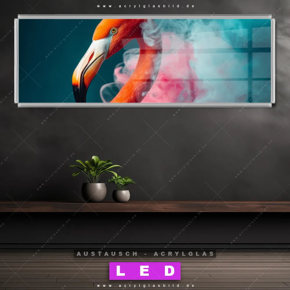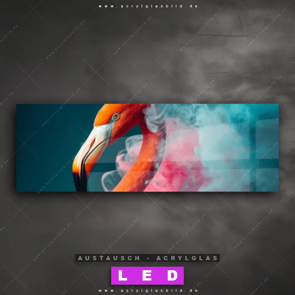 Wechsel-Acrylglas Canvalight® DIA | Flamingo in bunter Rauchwolke | Panorama