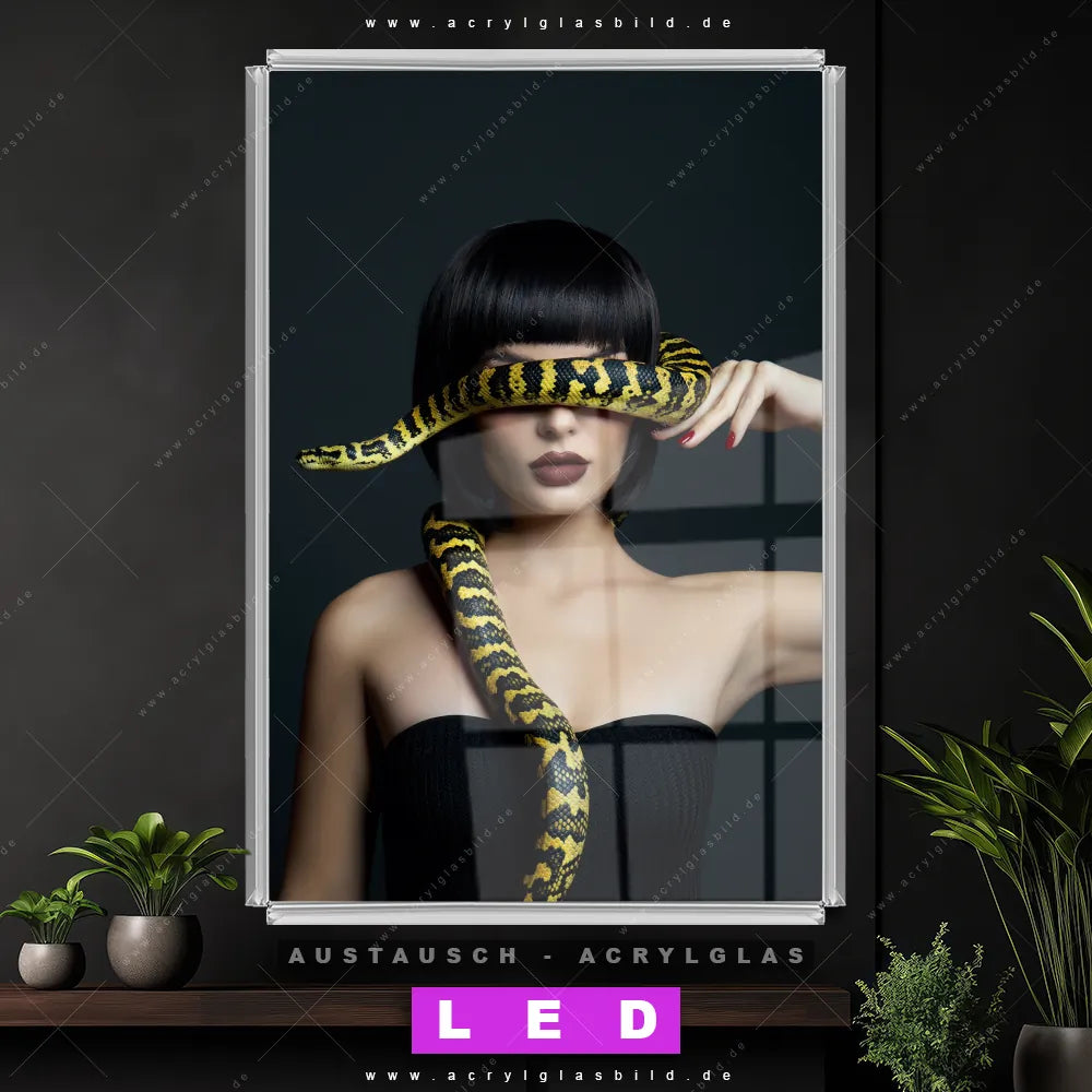 Wechsel-Acrylglas Canvalight® DIA | Frau mit gelber Schlange | Hochformat