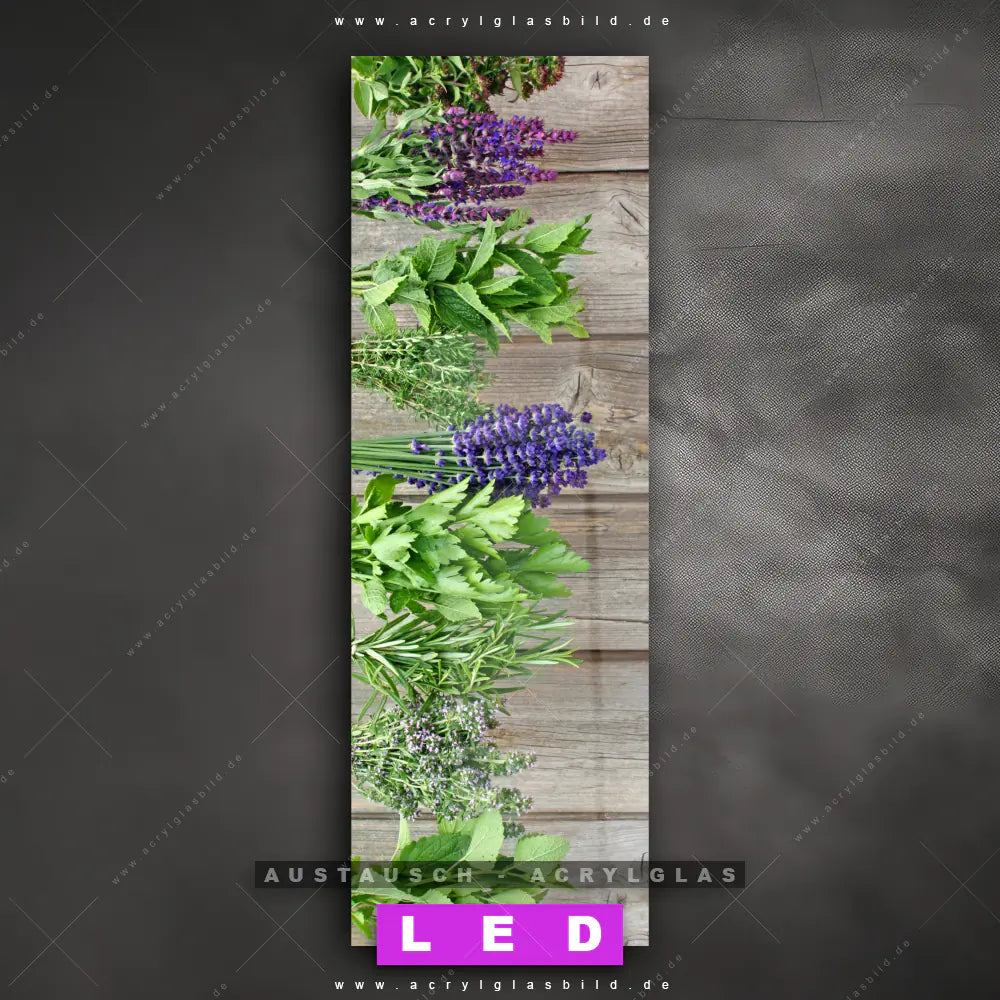 Wechsel-Acrylglas Canvalight® DIA | Frische Kräuter an Holzstange | Schmal