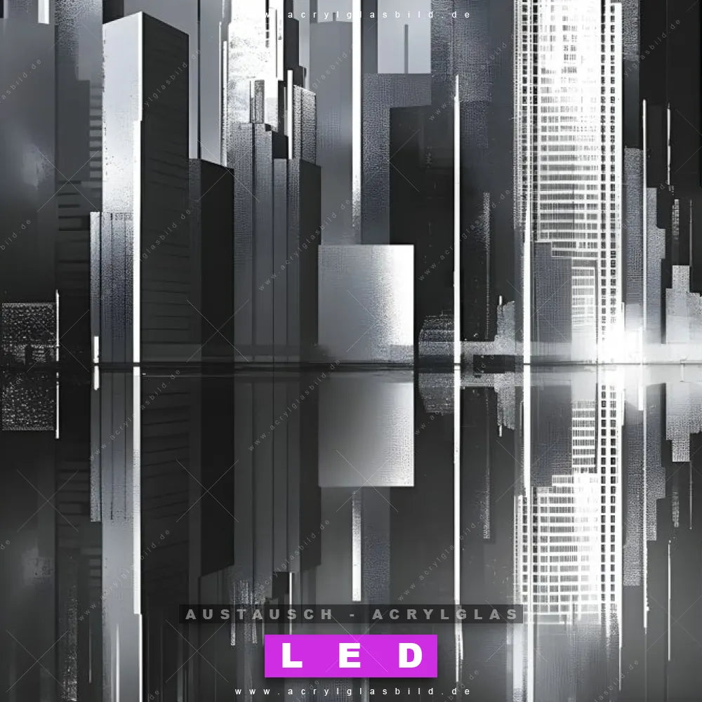 Begriffe wie Skyline, Metropole, Häuser, Wolkenkratzer, Hochhäuser, Stadt, Gebäude, Kunst, Malerei haben dich auf der Suche nach deinem neuen Austausch-Acrylglasbild inspiriert? Dann sollte das Wechsel-Acrylglasbild Metropole in Silber & Schwarz für dein bereits vorhandenes LED Acrylglasbild Canvalight® DIA den Weg zu dir finden.