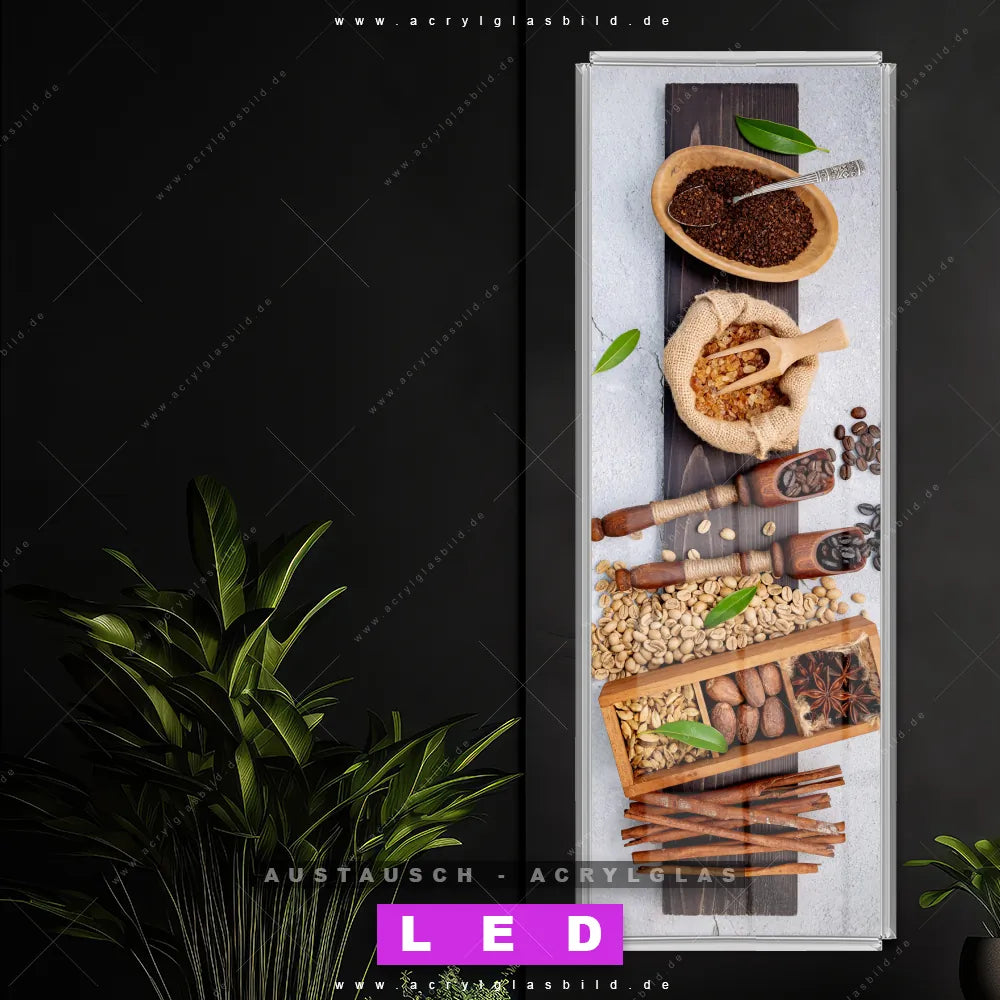 Begriffe wie Kaffee, Coffee, Küche, Kaffebohnen, Bohne, Genuss, Aroma, Brauner Zucker, Zimtstangen, Sternanis, Holzbrett haben dich auf der Suche nach deinem neuen Austausch-Acrylglasbild inspiriert? Dann sollte das Wechsel-Acrylglasbild Leckeres Kaffee-Arrangement für dein bereits vorhandenes LED Acrylglasbild Canvalight® DIA den Weg zu dir finden.