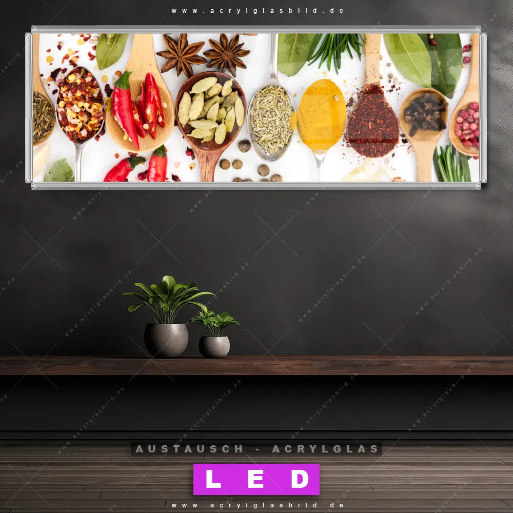 Wechsel-Acrylglas Canvalight® DIA | Gewürze auf Löffeln - weiß | Panorama