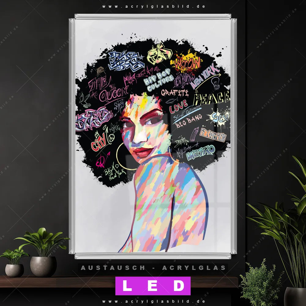 Wechsel-Acrylglas Canvalight® DIA | Graffiti Afro No.1 | Hochformat