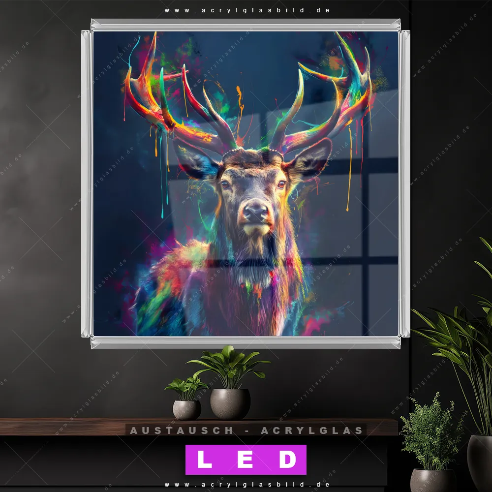 Wechsel-Acrylglas Canvalight® DIA | Hirsch im leuchtenden Farbmix | Quadrat