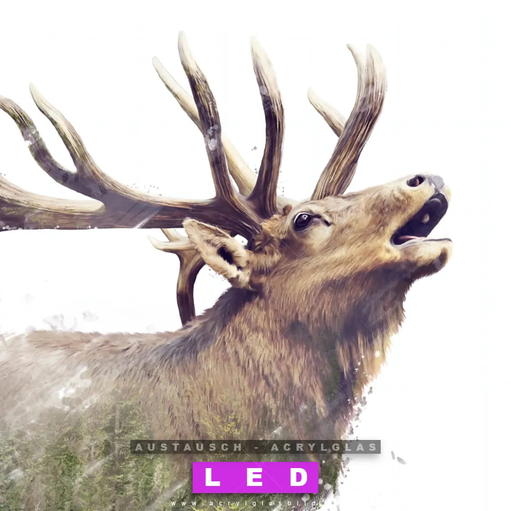 Begriffe wie Hirsch, Deer, Wald, Doppelbelichtung, Natur, skandinavisch, Bäume, Rotwild, Reh haben dich auf der Suche nach deinem neuen Austausch-Acrylglasbild inspiriert? Dann sollte das Wechsel-Acrylglasbild Wald und Hirsch werden Eins für dein bereits vorhandenes LED Acrylglasbild Canvalight® DIA den Weg zu dir finden.