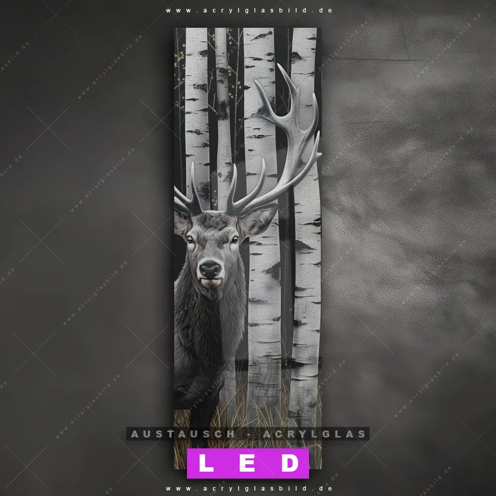 Wechsel-Acrylglas Canvalight® DIA | Hirschporträt vor Birken | Schmal