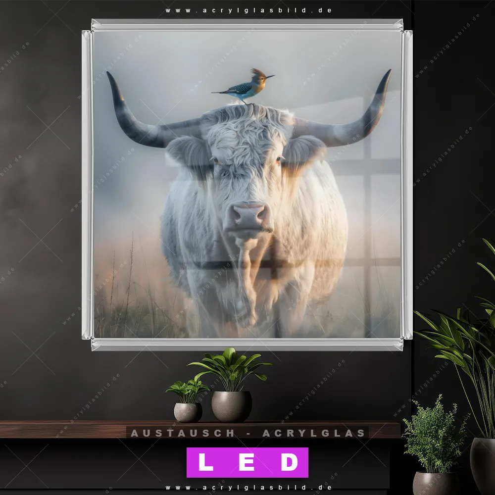Wechsel-Acrylglas Canvalight® DIA | Hochlandrind & bunter Vogel | Quadrat