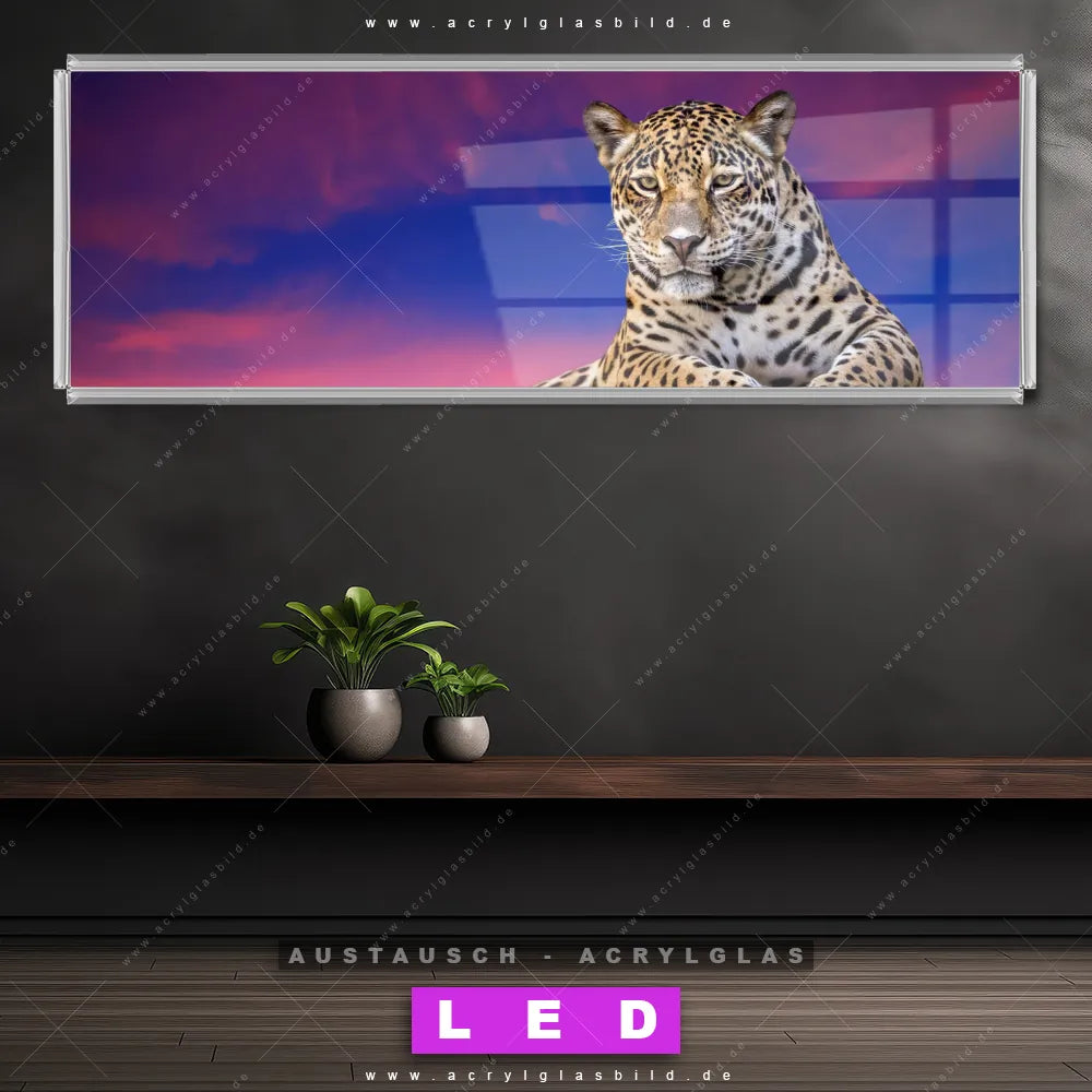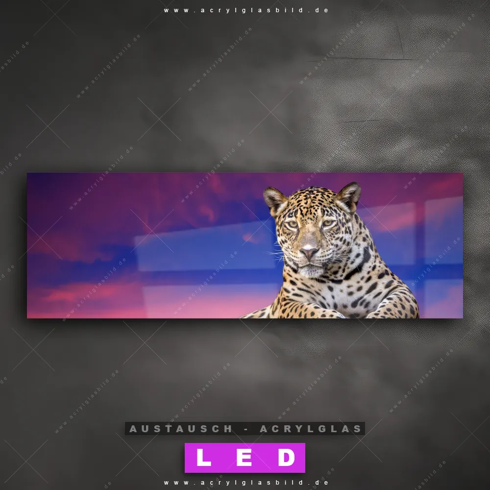 Wechsel-Acrylglas Canvalight® DIA | Jaguar auf Felsen | Panorama