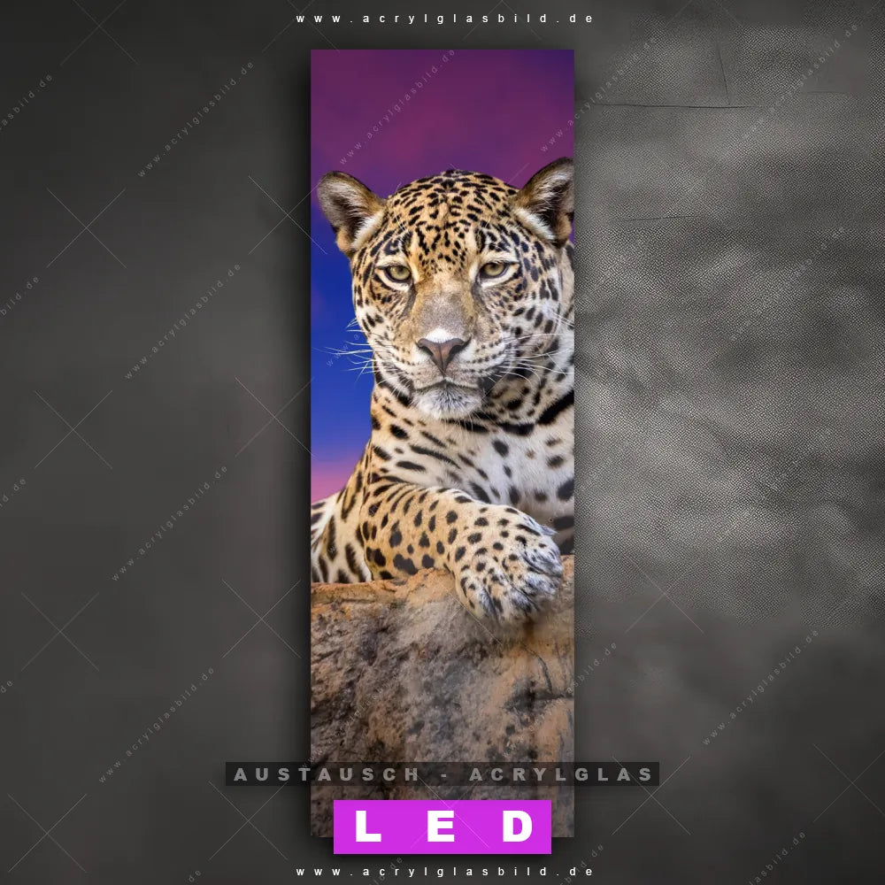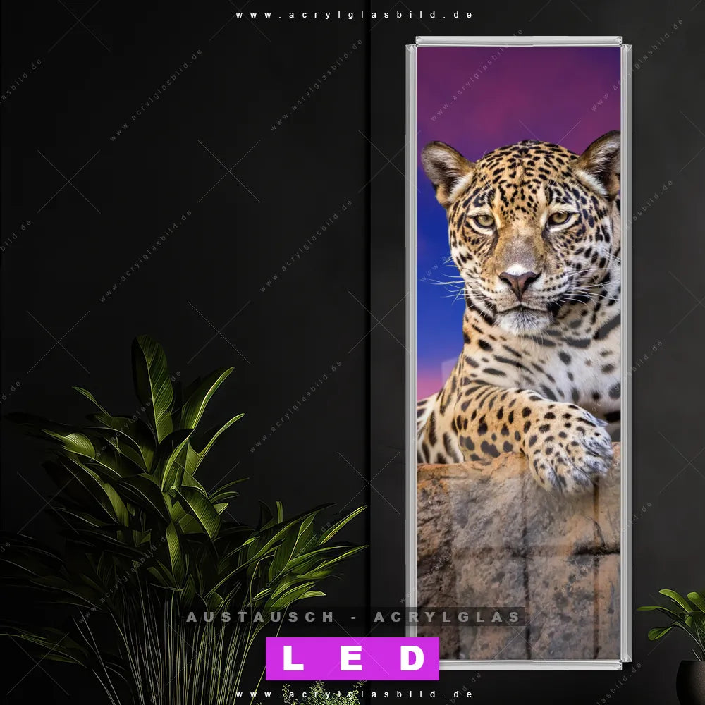 Wechsel-Acrylglas Canvalight® DIA | Jaguar auf Felsen | Schmal