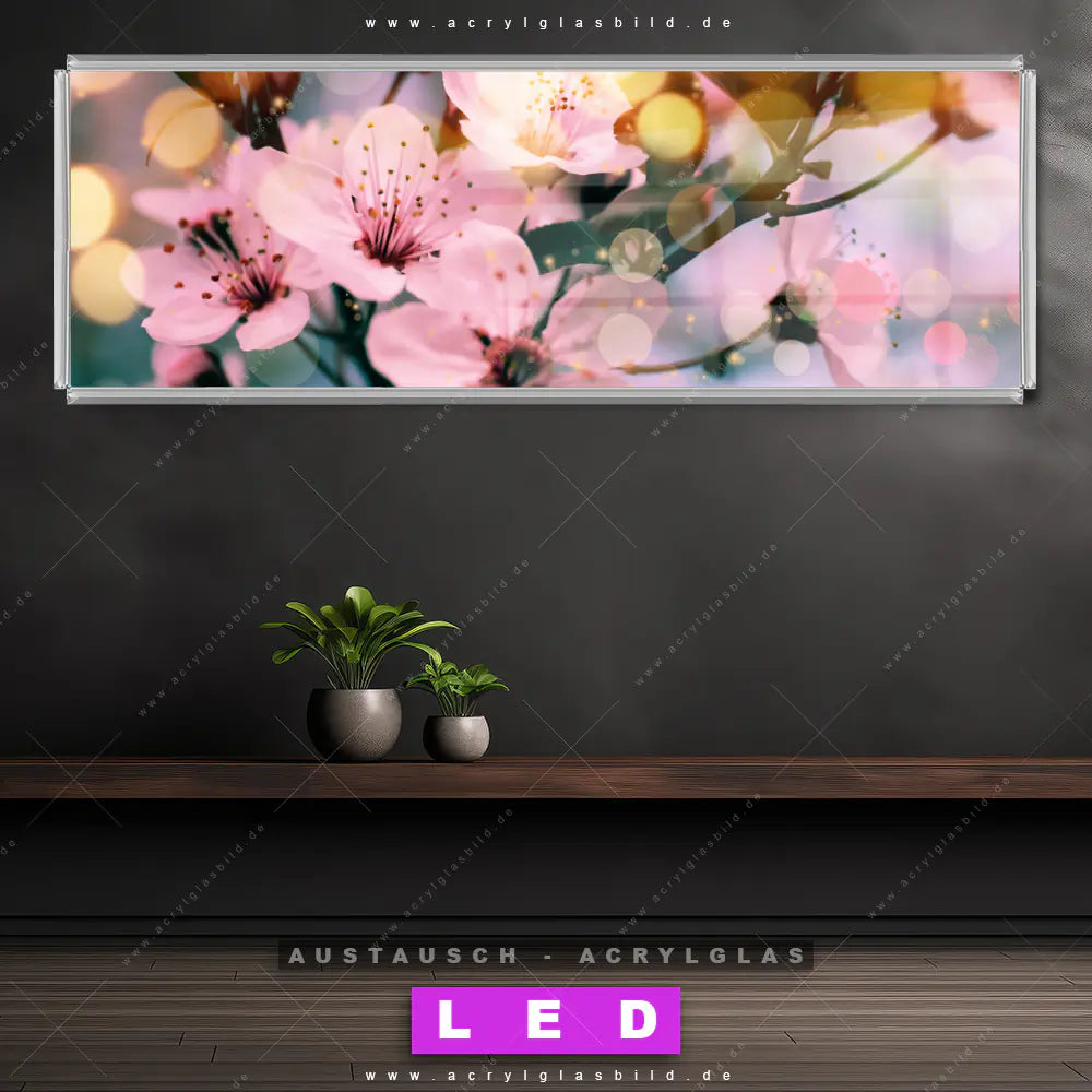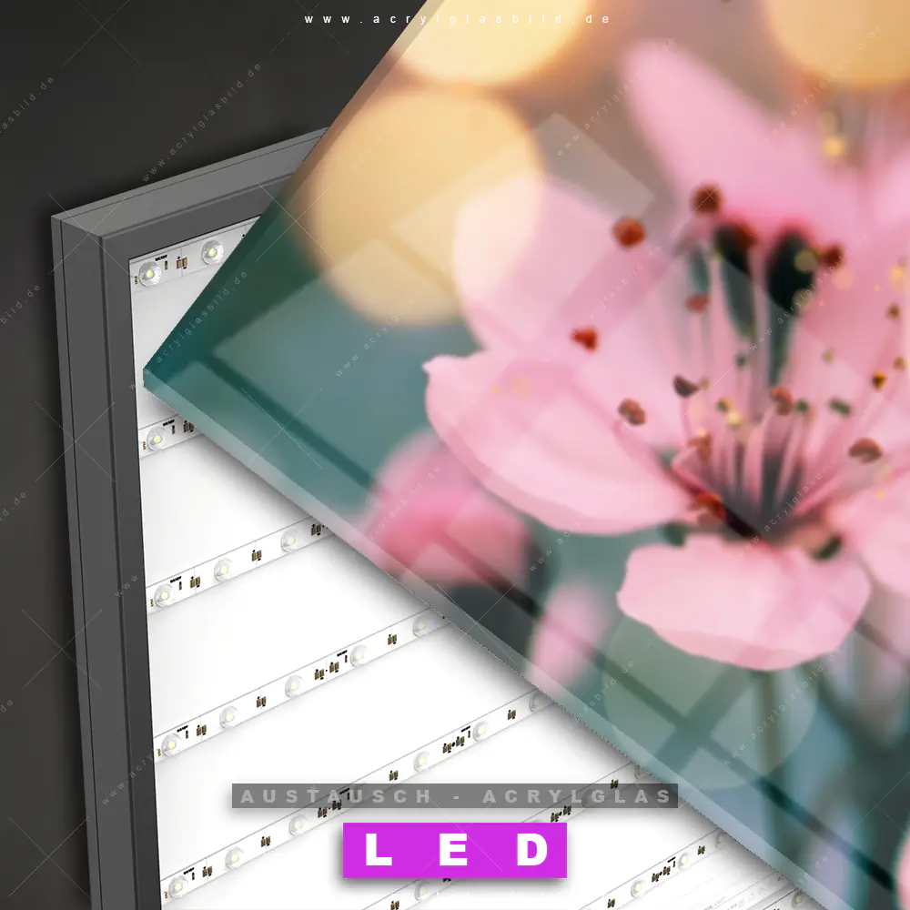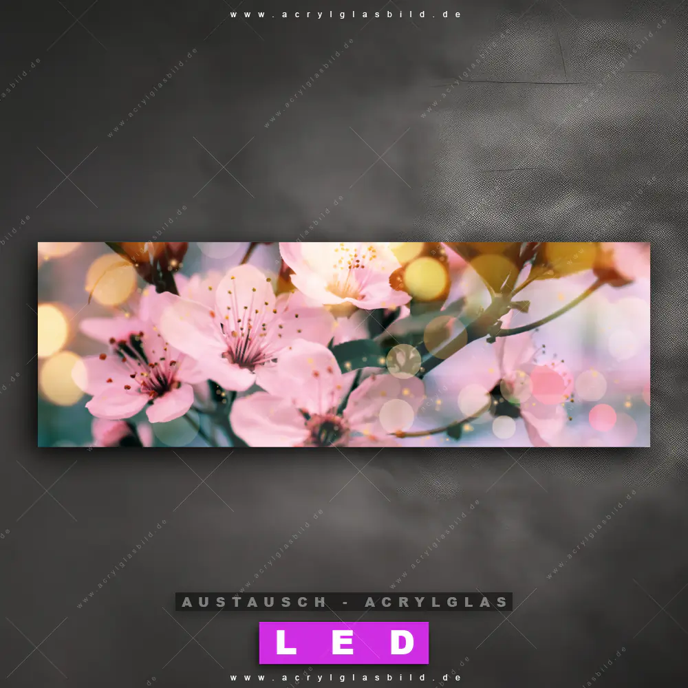 Begriffe wie Blumen, Kirschblüten, Sakura, Pflanze, Natur, Blüten, Glitzer, Sonnenlicht, Frühling, Kirschbaum haben dich auf der Suche nach deinem neuen Austausch-Acrylglasbild inspiriert? Dann sollte das Wechsel-Acrylglasbild Blütenzauber mit Lichteffekten für dein bereits vorhandenes LED Acrylglasbild Canvalight® DIA den Weg zu dir finden.