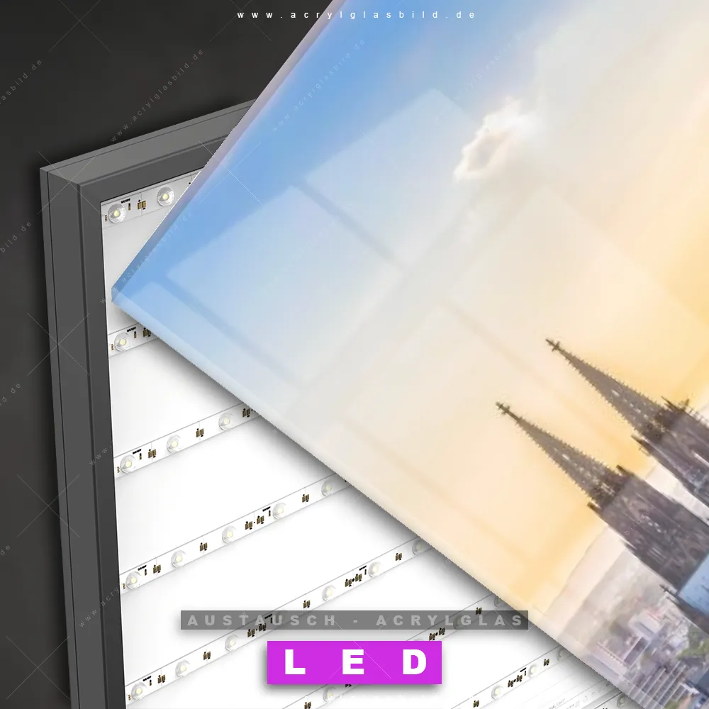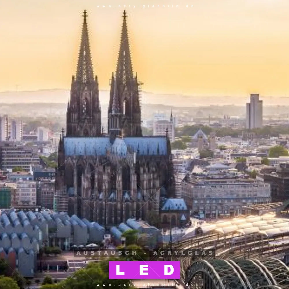 Begriffe wie Sehenswürdigkeiten, Skyline, Häuser, Köln, Deutschland, Rhein, Kölner Dom haben dich auf der Suche nach deinem neuen Austausch-Acrylglasbild inspiriert? Dann sollte das Wechsel-Acrylglasbild Panorama von Köln für dein bereits vorhandenes LED Acrylglasbild Canvalight® DIA den Weg zu dir finden.