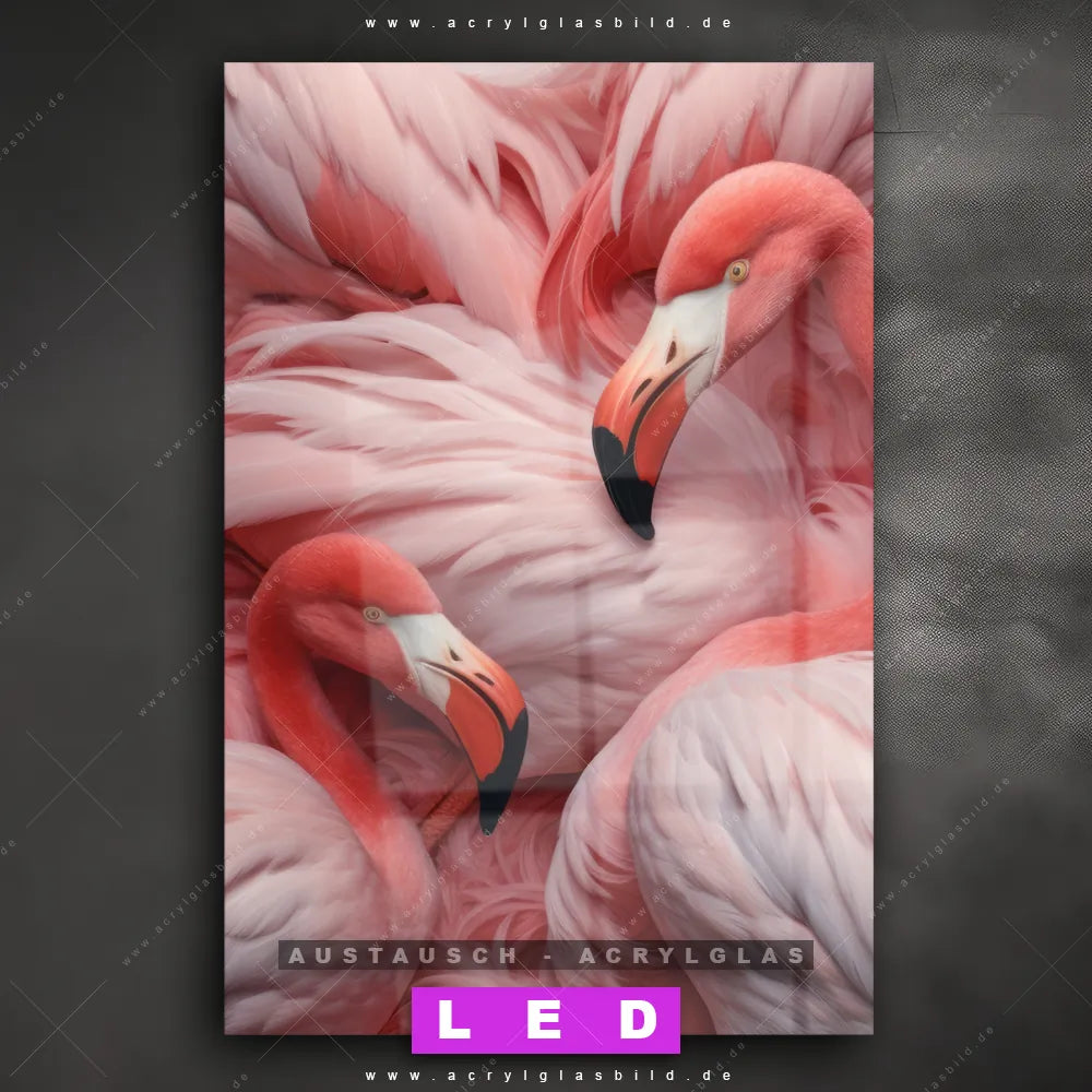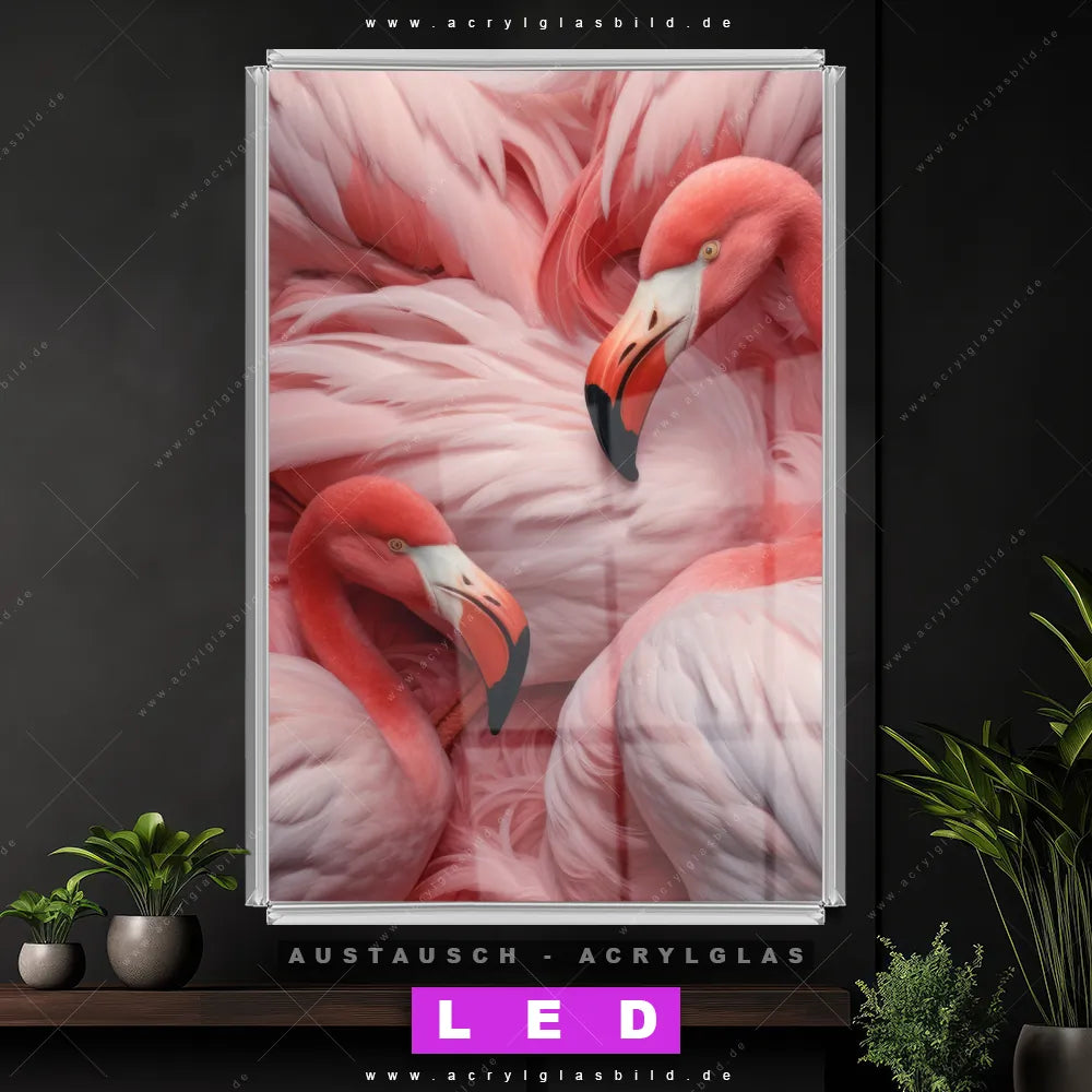 Wechsel-Acrylglas Canvalight® DIA | Kuschelnde Flamingos | Hochformat