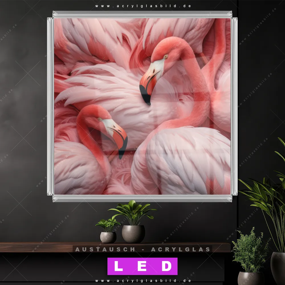 Wechsel-Acrylglas Canvalight® DIA | Kuschelnde Flamingos | Quadrat