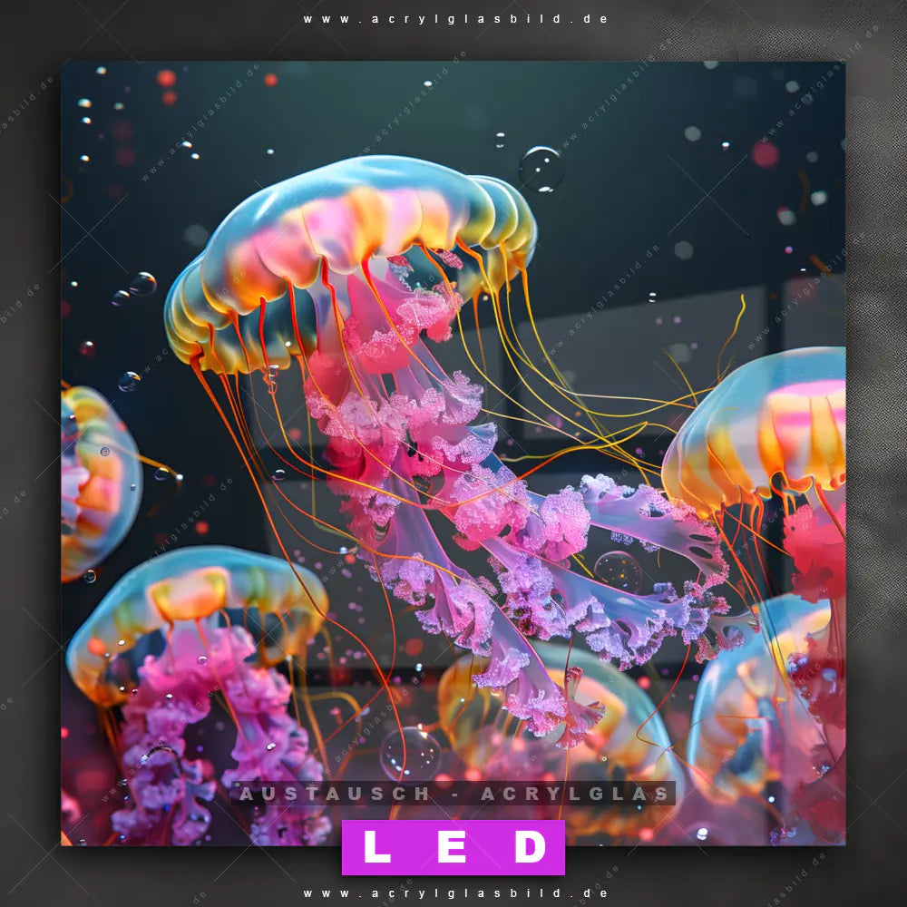 Wechsel-Acrylglas Canvalight® DIA | Leuchtende Quallen unter Wasser | Quadrat