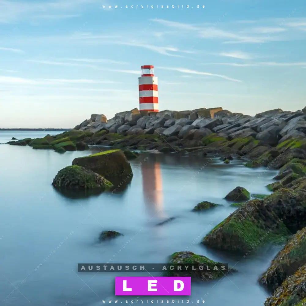 Begriffe wie Leuchtturm, Meer, Ostsee, Nordsee, Deutschland, Küste, Felsen, Horizont haben dich auf der Suche nach deinem neuen Austausch-Acrylglasbild inspiriert? Dann sollte das Wechsel-Acrylglasbild Leuchtturm am ruhigen Meer für dein bereits vorhandenes LED Acrylglasbild Canvalight® DIA den Weg zu dir finden.