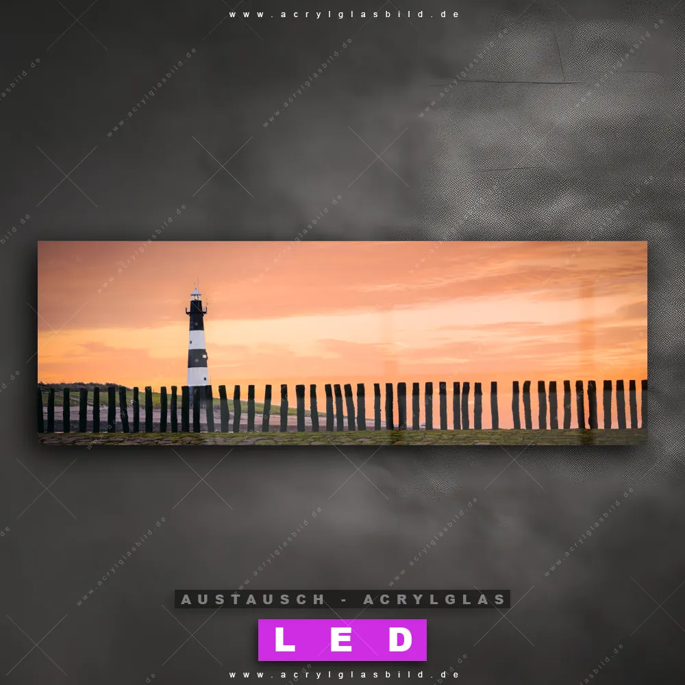 Begriffe wie Leuchtturm, Sonnenuntergang, Ostsee, Nordsee, Sommer, Reise, Meer haben dich auf der Suche nach deinem neuen Austausch-Acrylglasbild inspiriert? Dann sollte das Wechsel-Acrylglasbild Leuchtturm im Abendlicht für dein bereits vorhandenes LED Acrylglasbild Canvalight® DIA den Weg zu dir finden.