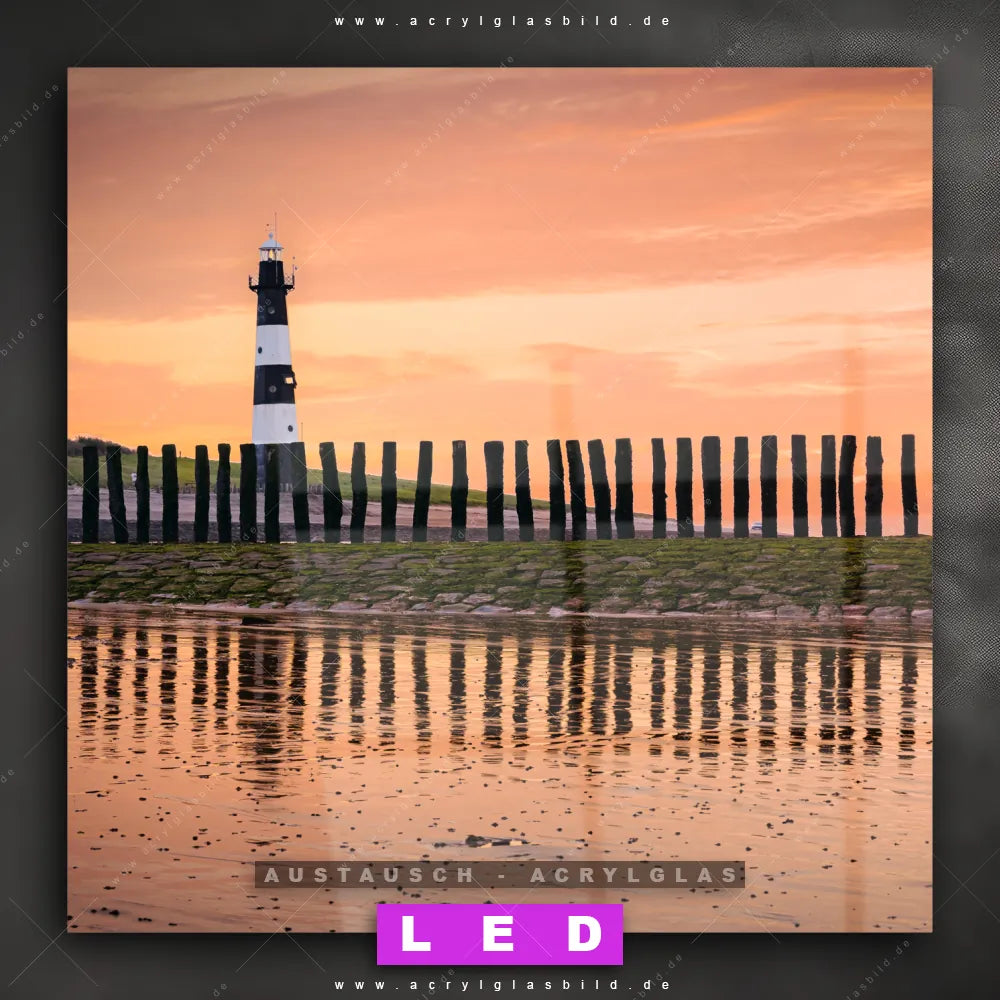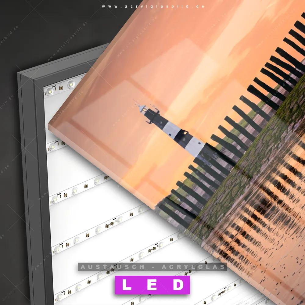 Begriffe wie Leuchtturm, Sonnenuntergang, Ostsee, Nordsee, Sommer, Reise, Meer haben dich auf der Suche nach deinem neuen Austausch-Acrylglasbild inspiriert? Dann sollte das Wechsel-Acrylglasbild Leuchtturm im Abendlicht für dein bereits vorhandenes LED Acrylglasbild Canvalight® DIA den Weg zu dir finden.