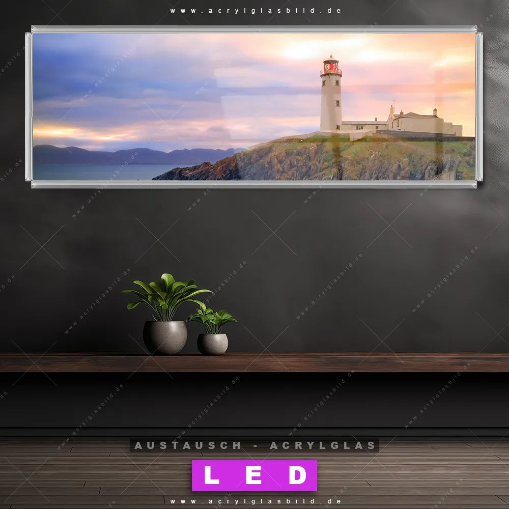 Wechsel-Acrylglas Canvalight® DIA | Leuchtturm bei stürmischer See | Panorama