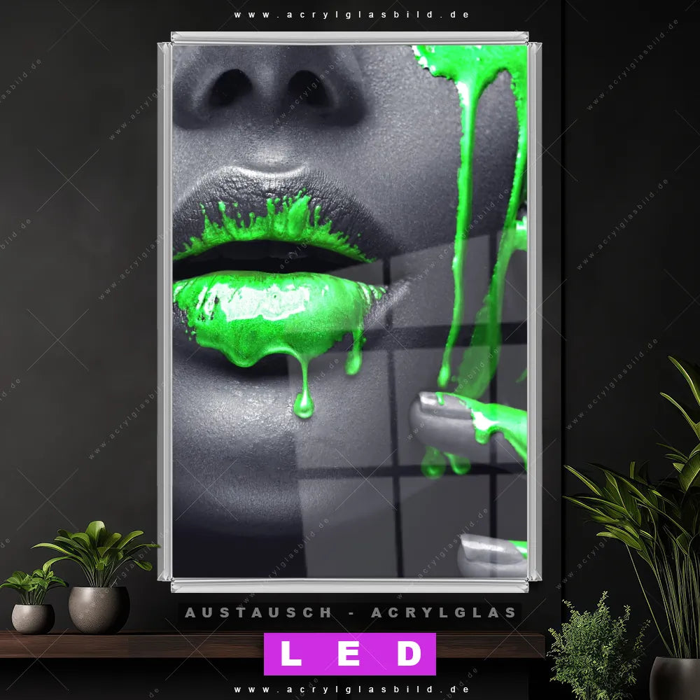 Wechsel-Acrylglas Canvalight® DIA | Lippen Silber & Grün | Hochformat