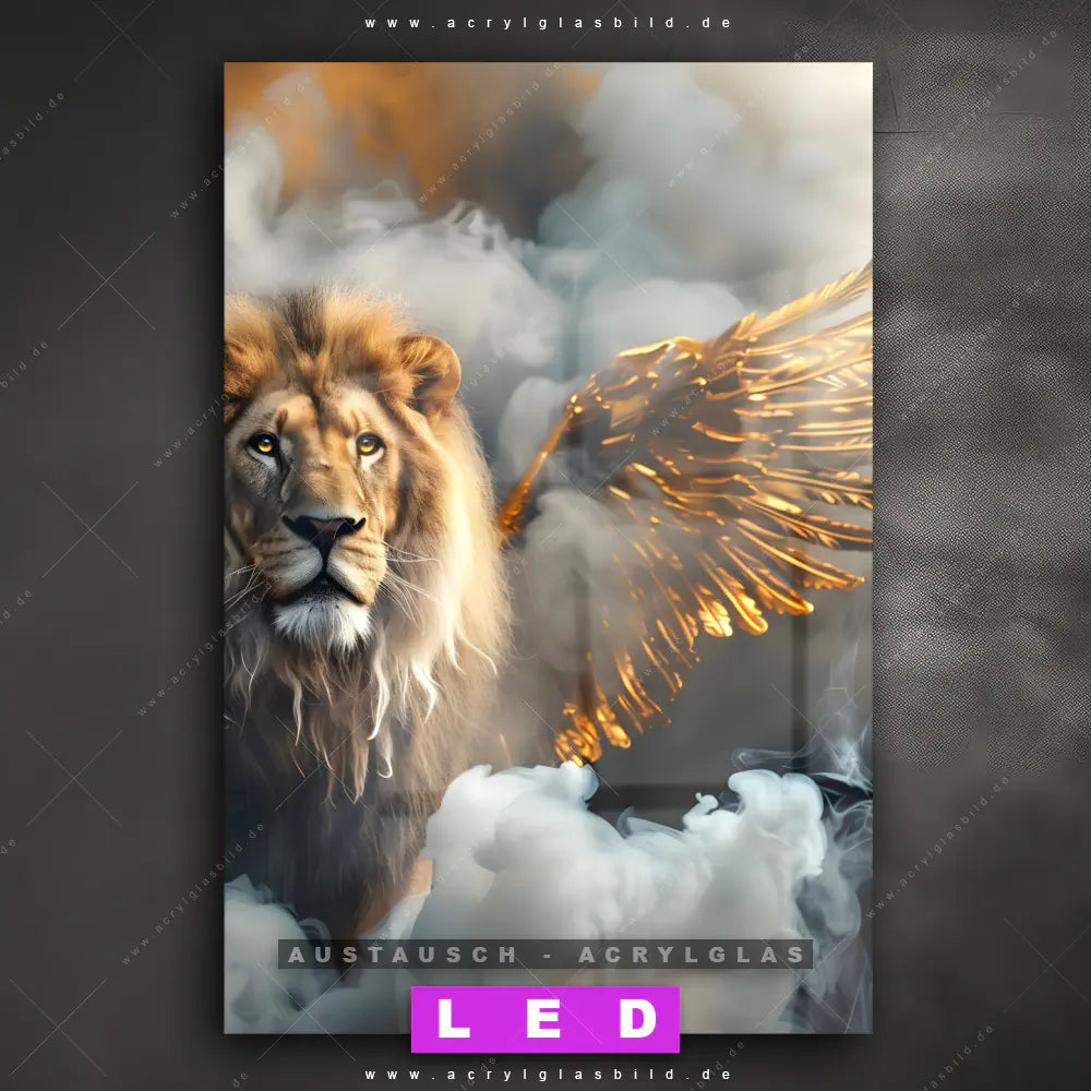 Wechsel-Acrylglas Canvalight® DIA | Löwe mit goldenen Flügeln | Hochformat