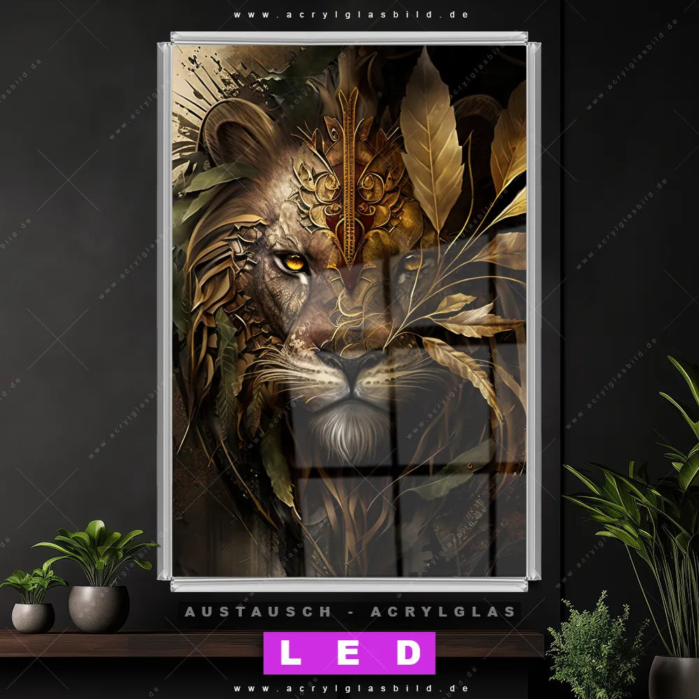 Wechsel-Acrylglas Canvalight® DIA | Löwenkopf mit Krone | Hochformat