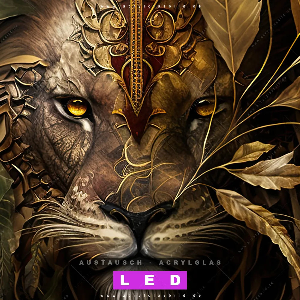 Begriffe wie Raubkatze, Löwe, Afrika, Dschungel, Blätter, Porträt haben dich auf der Suche nach deinem neuen Austausch-Acrylglasbild inspiriert? Dann sollte das Wechsel-Acrylglasbild Löwe mit Laubkrone für dein bereits vorhandenes LED Acrylglasbild Canvalight® DIA den Weg zu dir finden.