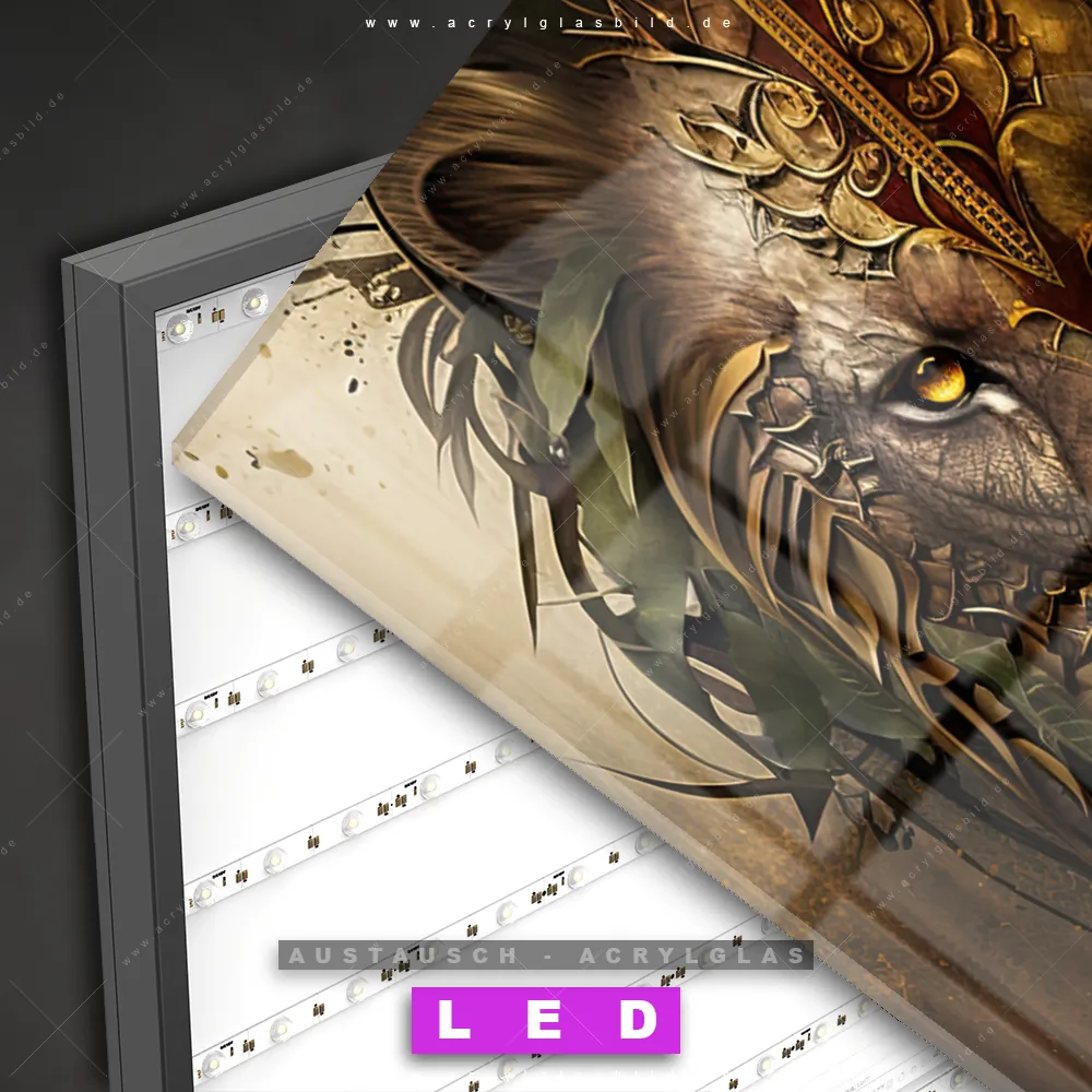 Wechsel-Acrylglas Canvalight® DIA | Löwenkopf mit Krone | Querformat