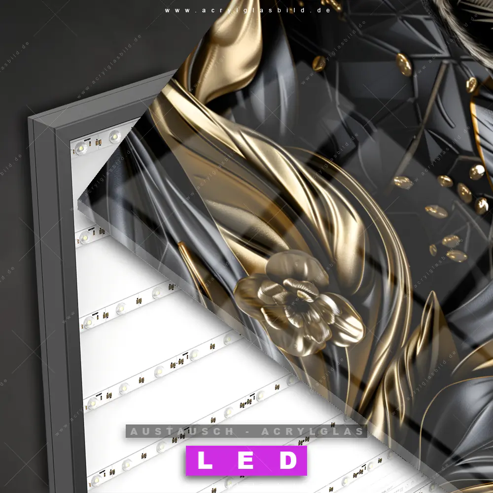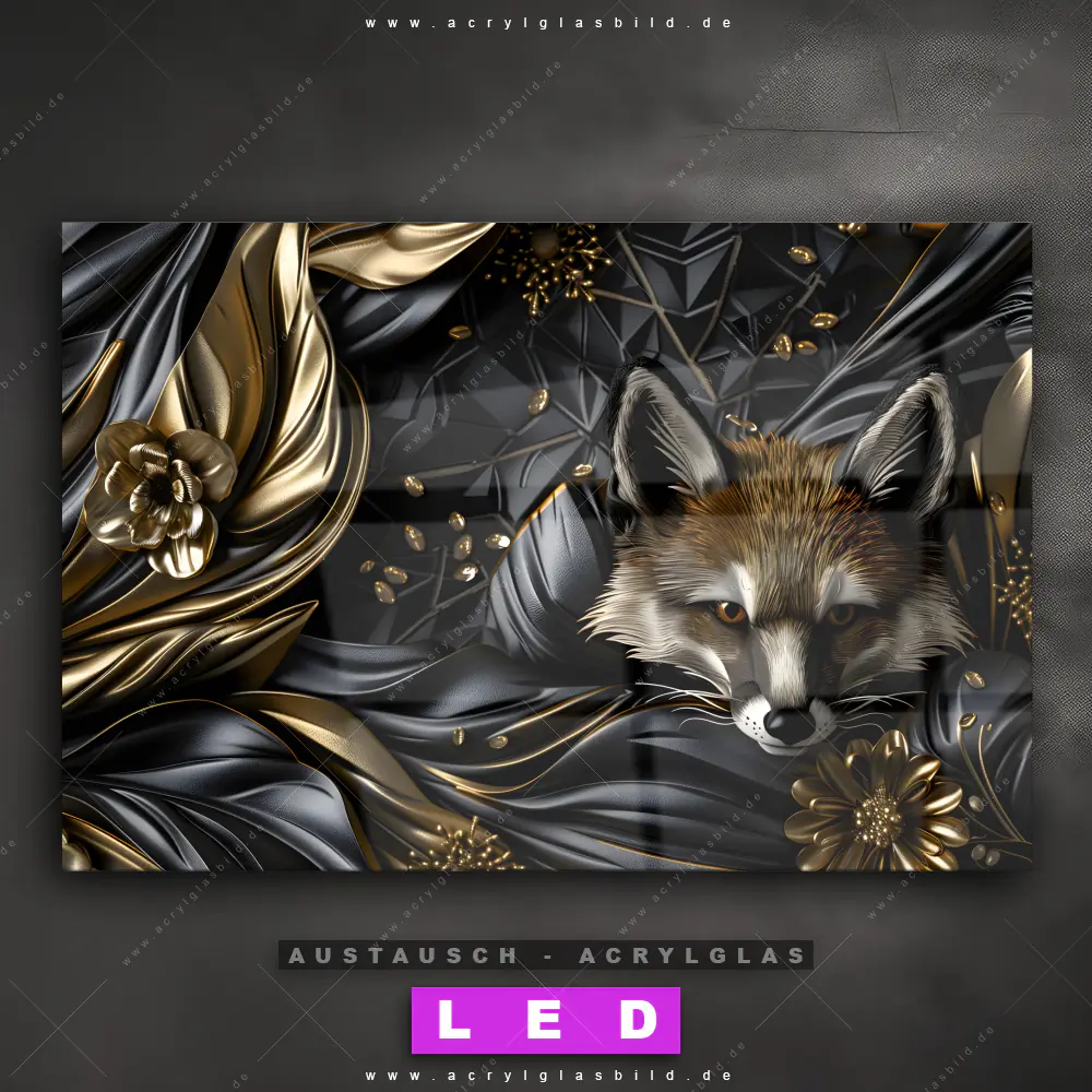 Wechsel-Acrylglas Canvalight® DIA | Luxuriöser Fuchs mit Blumen | Querformat