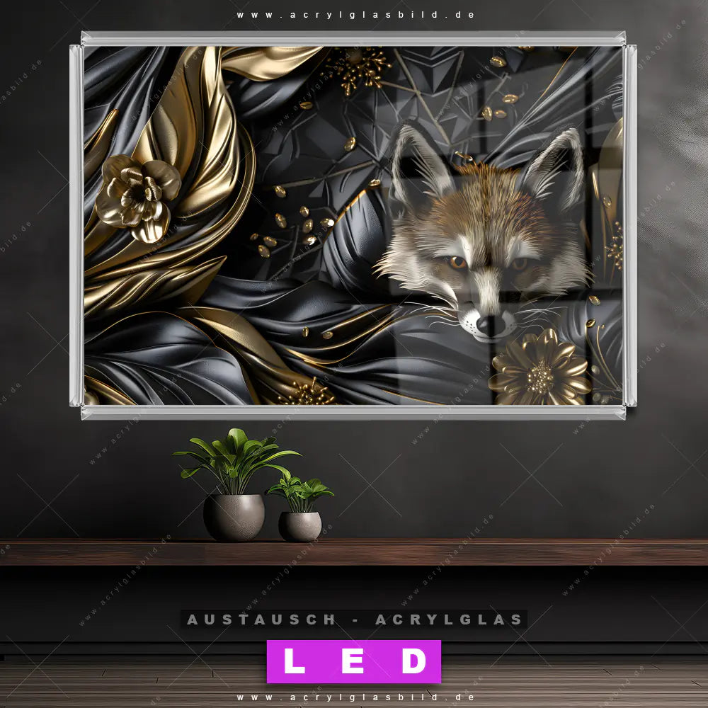Begriffe wie Fuchs, Natur, Rotfuchs, Tier, Tierporträt, Nahaufnahme, Blätter, Blumen, Blüten haben dich auf der Suche nach deinem neuen Austausch-Acrylglasbild inspiriert? Dann sollte das Wechsel-Acrylglasbild Goldener Fuchs und Blüten für dein bereits vorhandenes LED Acrylglasbild Canvalight® DIA den Weg zu dir finden.