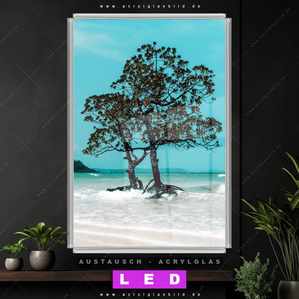 Begriffe wie Küste, Landschaft, Sommer, Südsee - Karibik, Urlaub - Reisen haben dich auf der Suche nach deinem neuen Austausch-Acrylglasbild inspiriert? Dann sollte das Wechsel-Acrylglasbild Mangrove im Ozean für dein bereits vorhandenes LED Acrylglasbild Canvalight® DIA den Weg zu dir finden.