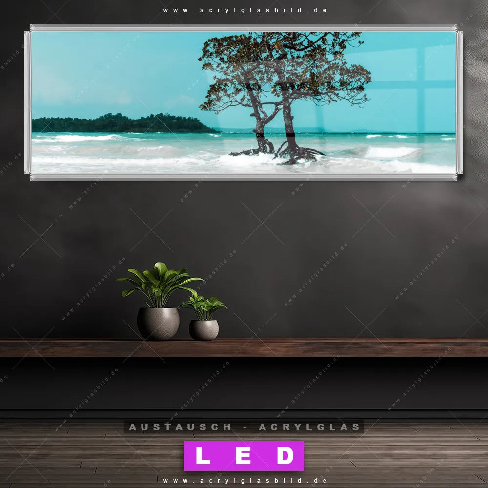 Begriffe wie Küste, Landschaft, Sommer, Südsee - Karibik, Urlaub - Reisen haben dich auf der Suche nach deinem neuen Austausch-Acrylglasbild inspiriert? Dann sollte das Wechsel-Acrylglasbild Mangrove im Ozean für dein bereits vorhandenes LED Acrylglasbild Canvalight® DIA den Weg zu dir finden.