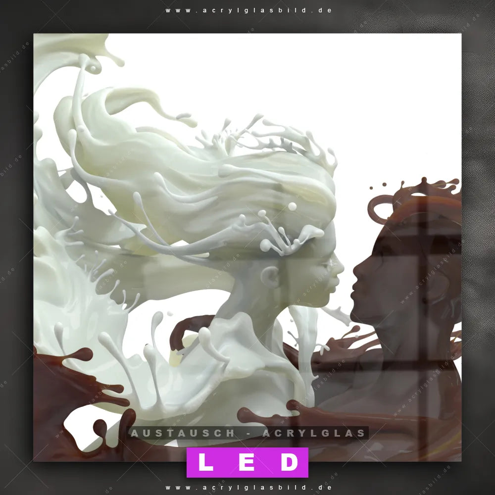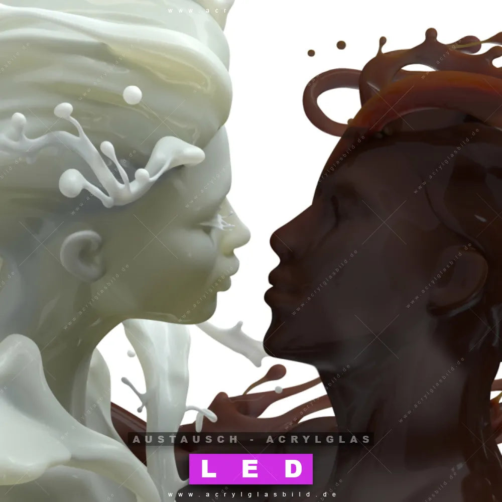 Begriffe wie Kuss, Liebe, Milch, Schokolade, Flüssigkeit, Mann, Frau, Paar, Kaffee haben dich auf der Suche nach deinem neuen Austausch-Acrylglasbild inspiriert? Dann sollte das Wechsel-Acrylglasbild Milch & Kaffee mit Gesicht für dein bereits vorhandenes LED Acrylglasbild Canvalight® DIA den Weg zu dir finden.