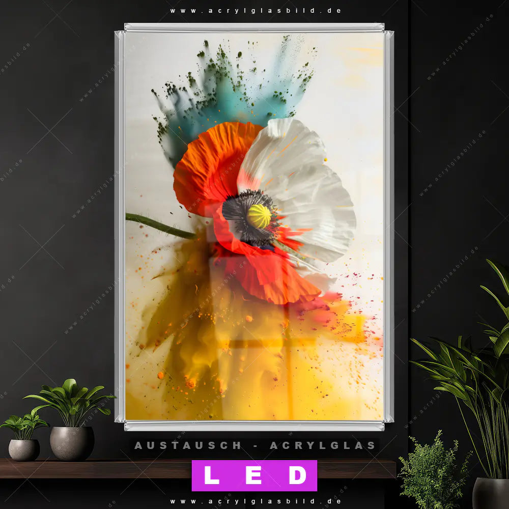 Wechsel-Acrylglas Canvalight® DIA | Mohnblume im Farbnebel | Hochformat