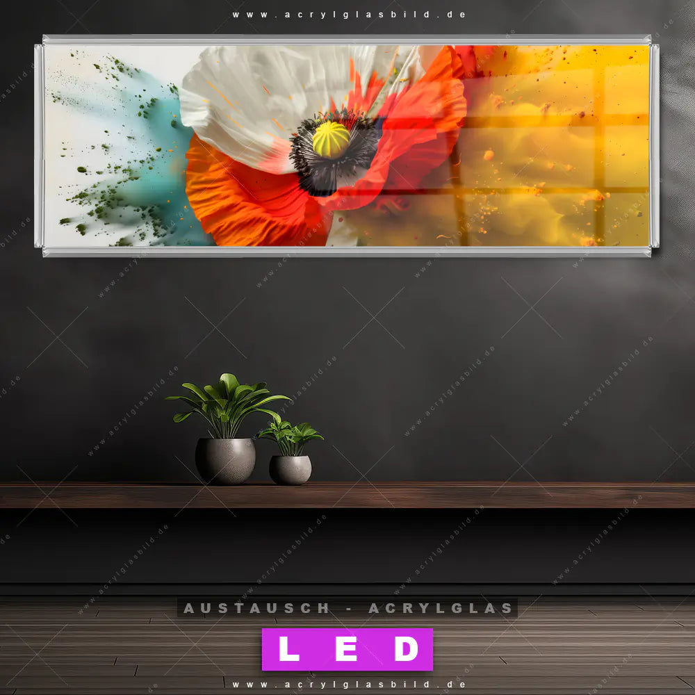 Wechsel-Acrylglas Canvalight® DIA | Mohnblume im Farbnebel | Panorama