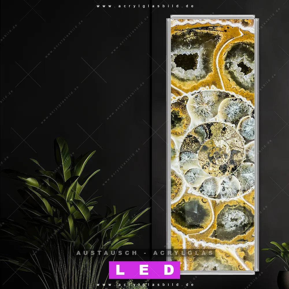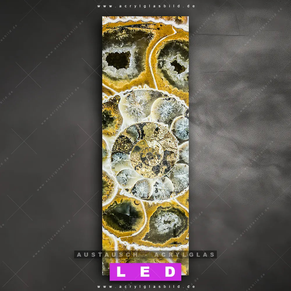 Begriffe wie Muschel, Nahaufnahme, Makro, Fossil, close up, Spiarale haben dich auf der Suche nach deinem neuen Austausch-Acrylglasbild inspiriert? Dann sollte das Wechsel-Acrylglasbild mineralisiertes Fossil für dein bereits vorhandenes LED Acrylglasbild Canvalight® DIA den Weg zu dir finden.
