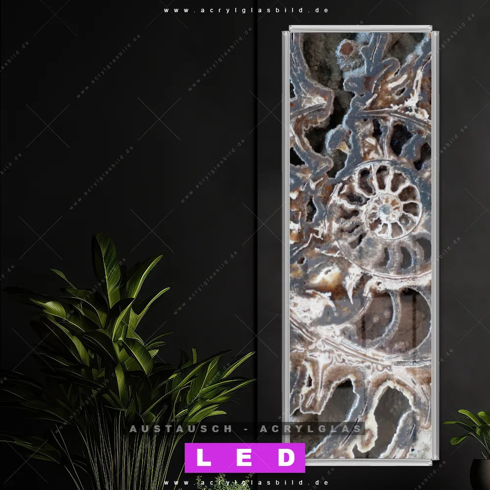 Begriffe wie Muschel, Nahaufnahme, Makro, Fossil, close up, Spirale, Rost, Rostoptik haben dich auf der Suche nach deinem neuen Austausch-Acrylglasbild inspiriert? Dann sollte das Wechsel-Acrylglasbild schneckenförmiges Fossil für dein bereits vorhandenes LED Acrylglasbild Canvalight® DIA den Weg zu dir finden.