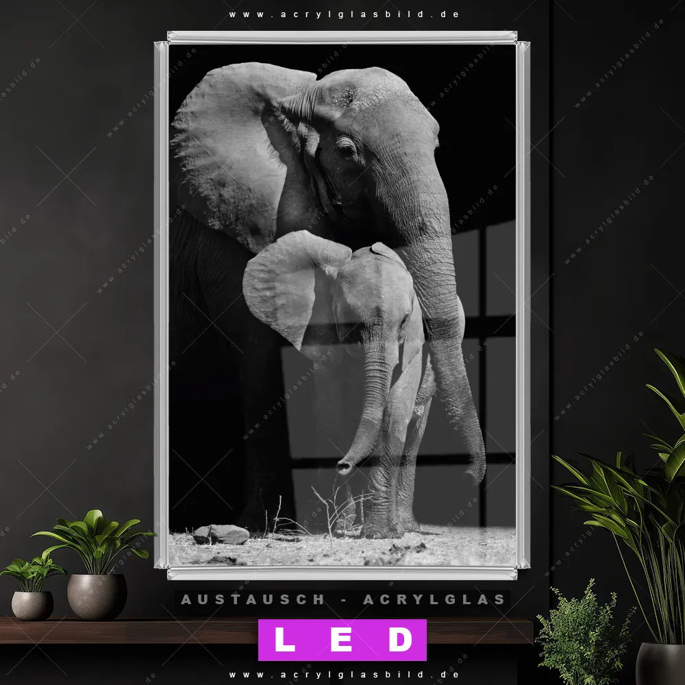 Wechsel-Acrylglas Canvalight® DIA | Mutter & Baby Elefant | Hochformat
