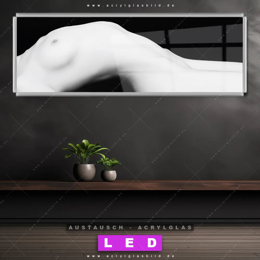 Begriffe wie Frau, Erotik, modern, Beauty, Körper, Body, Akt haben dich auf der Suche nach deinem neuen Austausch-Acrylglasbild inspiriert? Dann sollte das Wechsel-Acrylglasbild nackter Oberkörper einer Frau für dein bereits vorhandenes LED Acrylglasbild Canvalight® DIA den Weg zu dir finden.
