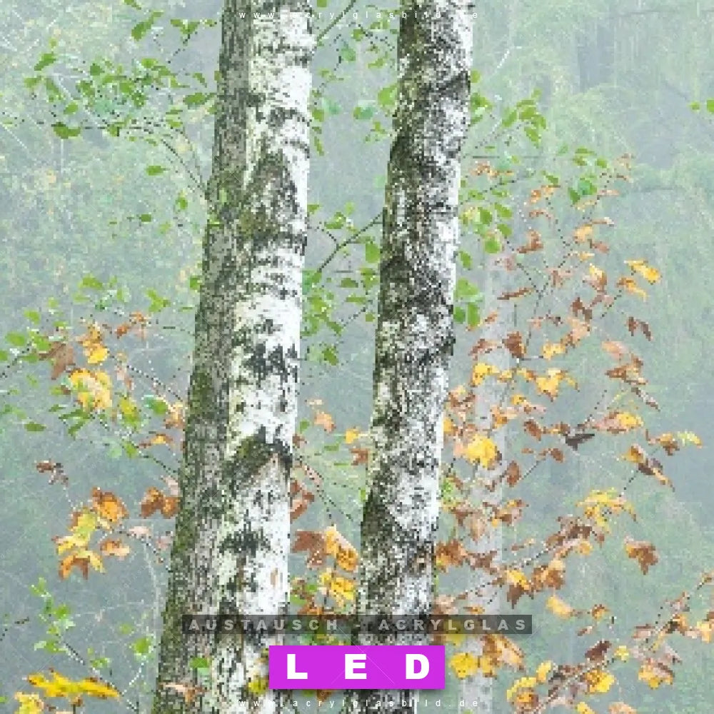 Begriffe wie Wald, Baum, Bäume, Natur, Birken, Ruhe, Stille, Nebel, Dunst, Laub, Zweige, Äste haben dich auf der Suche nach deinem neuen Austausch-Acrylglasbild inspiriert? Dann sollte das Wechsel-Acrylglasbild Birken im Nebel für dein bereits vorhandenes LED Acrylglasbild Canvalight® DIA den Weg zu dir finden.