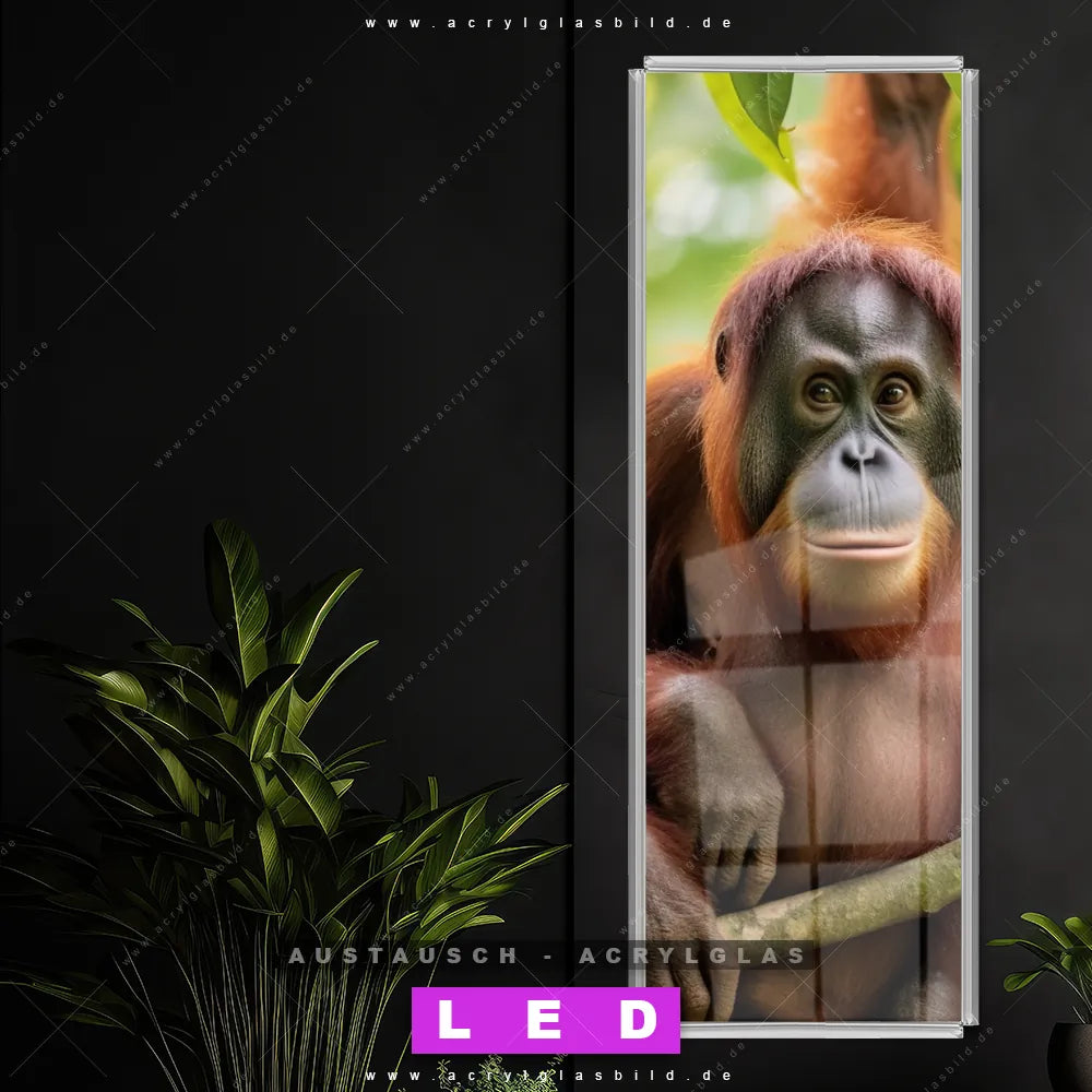 Wechsel-Acrylglas Canvalight® DIA | Orang Utan Familie im Regenwald | Schmal