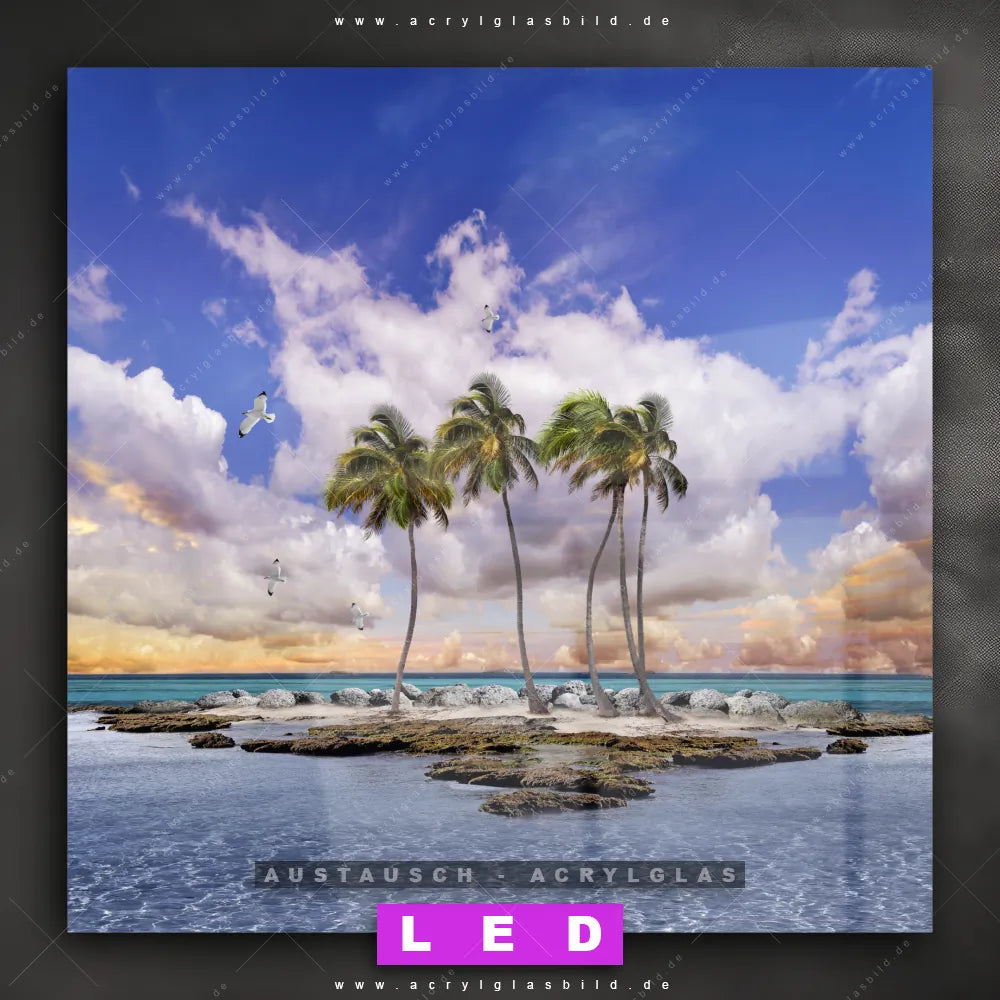 Wechsel-Acrylglas Canvalight® DIA | Palmen auf Insel | Quadrat