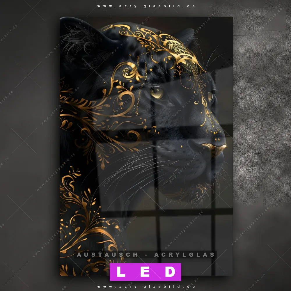 Wechsel-Acrylglas Canvalight® DIA | Panther mit goldenen Ornamenten | Hochformat