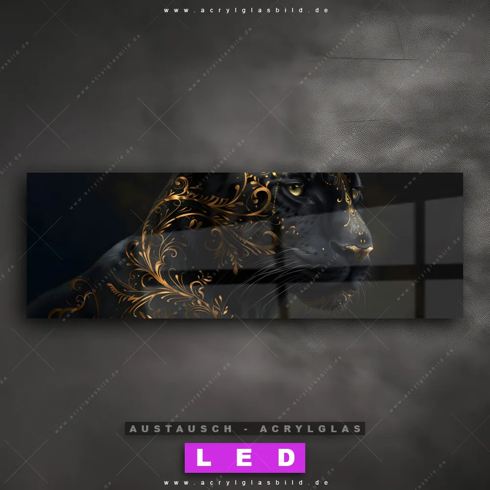 Wechsel-Acrylglas Canvalight® DIA | Panther mit goldenen Ornamenten | Panorama