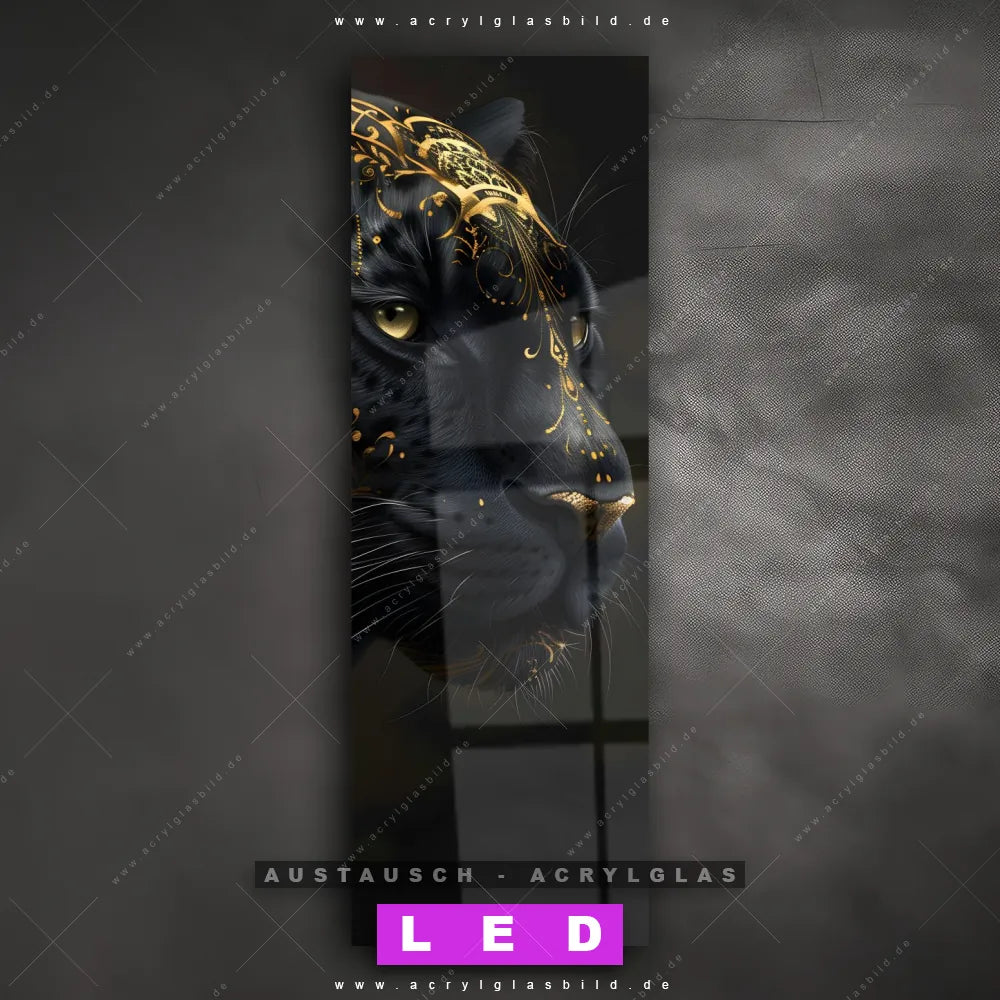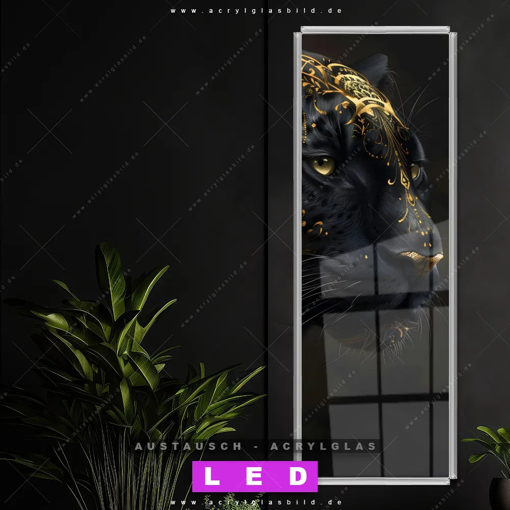 Wechsel-Acrylglas Canvalight® DIA | Panther mit goldenen Ornamenten | Schmal