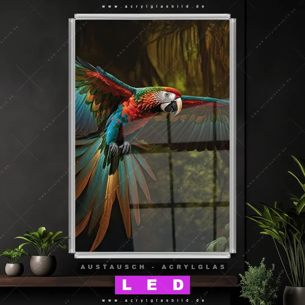 Wechsel-Acrylglas Canvalight® DIA | Papagei im Flug | Hochformat