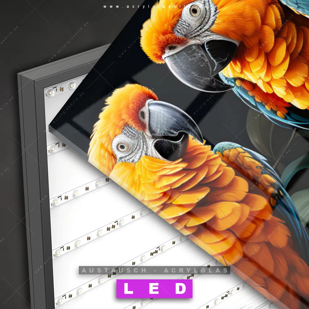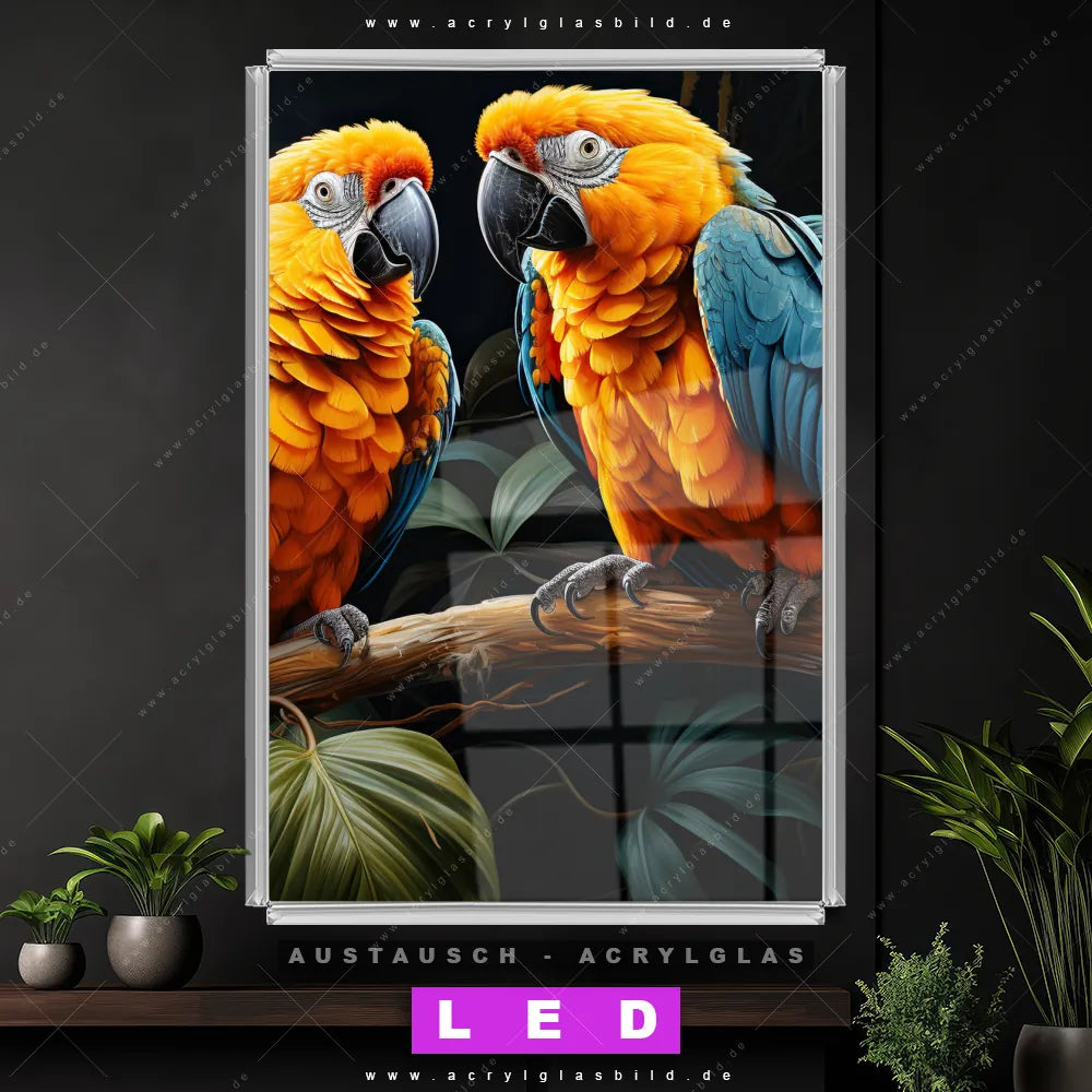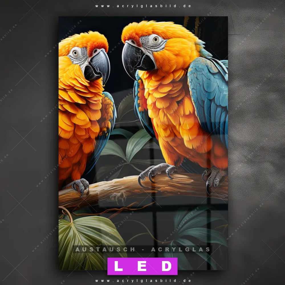 Wechsel-Acrylglas Canvalight® DIA | Papageien auf einem Ast | Hochformat