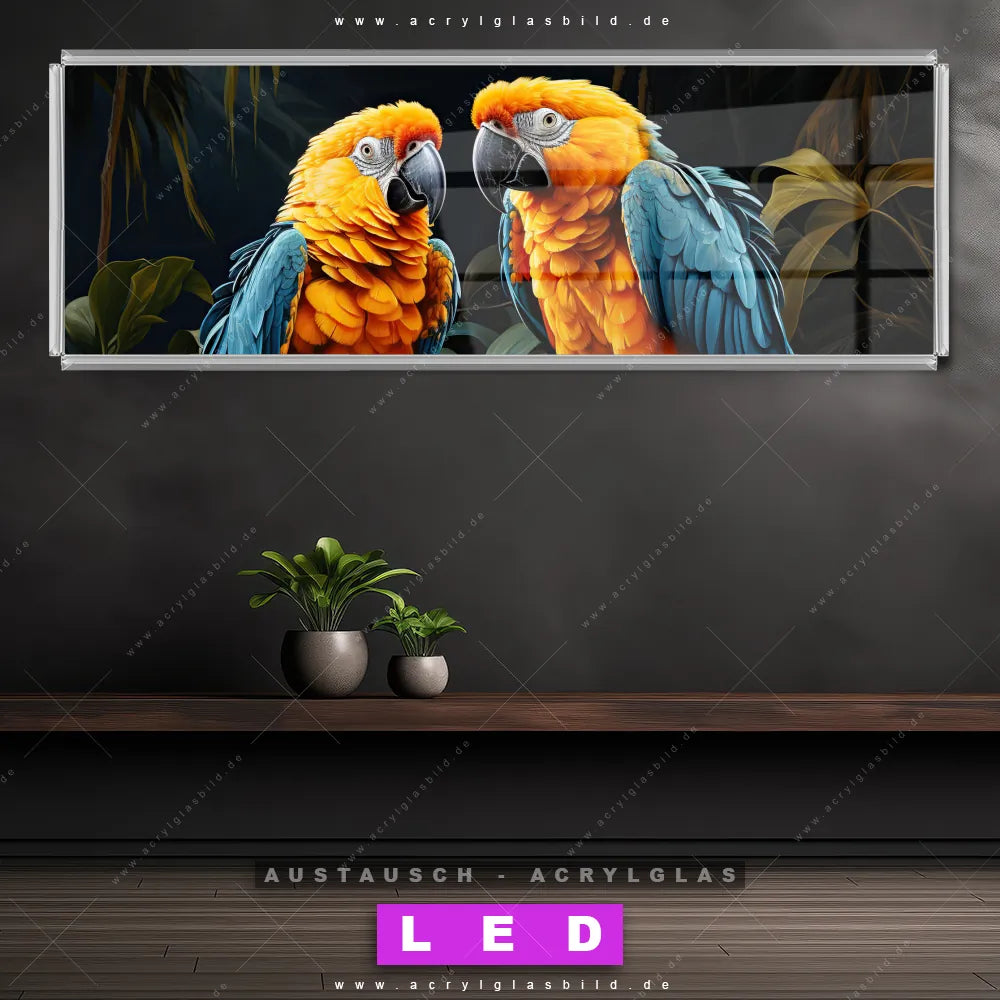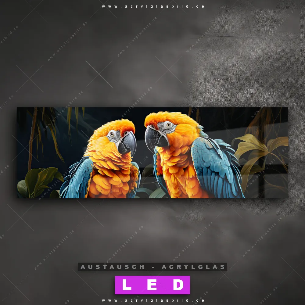 Wechsel-Acrylglas Canvalight® DIA | Papageien auf einem Ast | Panorama